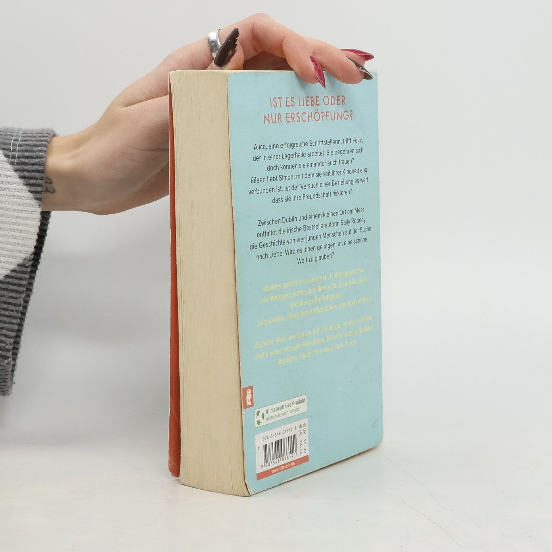 »Schöne Welt, wo bist du hat die karge, intensive Melancholie eines Hopper-Gemäldes. Ihr bester Roman.« Brandon Taylor, The New York Times Alice trifft Felix. Sie ist eine erfolgreiche Schriftstellerin, er arbeitet entfremdet in einer Lagerhalle. Sie begehren einander, doch können sie einander auch trauen? Alices beste Freundin Eileen hat eine schmerzvolle Trennung hinter sich und fühlt sich aufs Neue zu Simon hingezogen, mit dem sie seit ihrer Kindheit eng verbunden ist. Sie lieben sich, doch ist der Versuch einer Beziehung den Verlust ihrer Freundschaft wert? Zwischen Dublin und einem kleinen Ort an der irischen Küste entfaltet Sally Rooney eine Geschichte von vier jungen Menschen, die sich nahe sind, die einander verletzen, die sich austauschen: über Sex, über Ungleichheit und was sie mit Beziehungen macht, über die Welt, in der sie leben. Schöne Welt, wo bist du ist eine universelle Geschichte über den Raum zwischen Alleinsein und Einsamkeit und über die Freiheit, sein Leben mit anderen zu teilen – überwältigend klug, voller Klarheit und Trost.