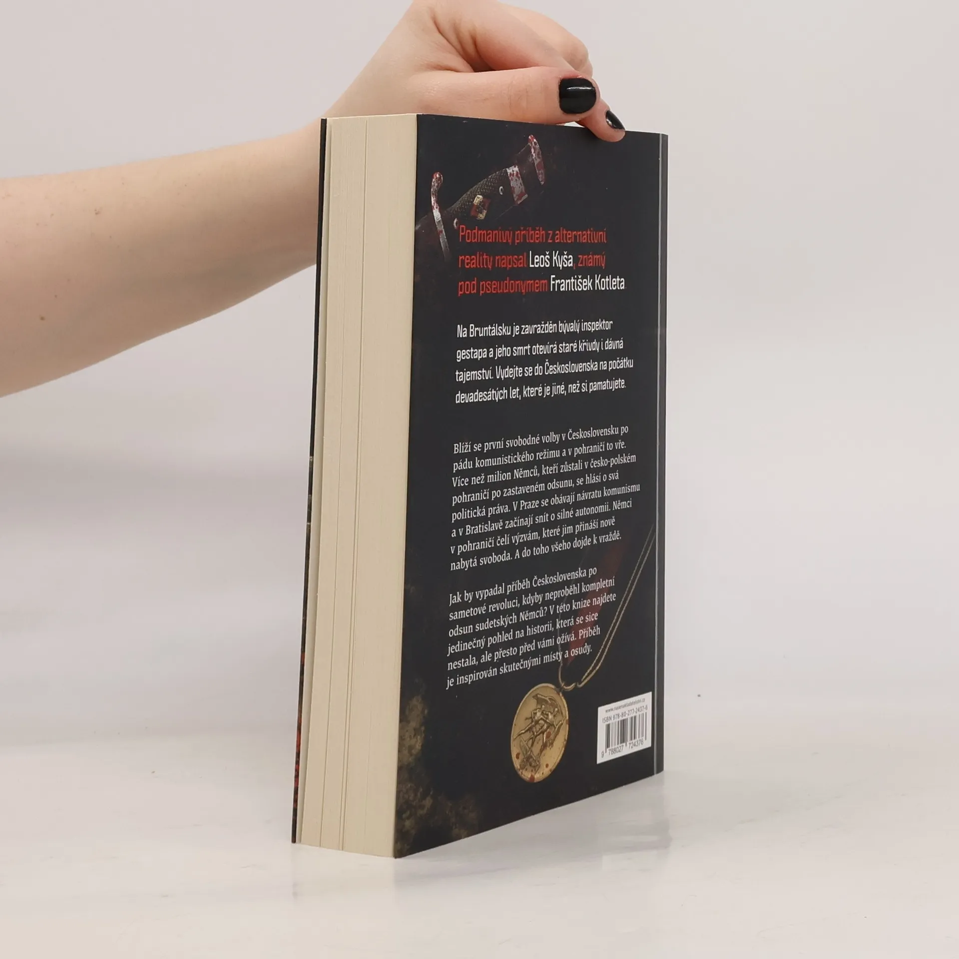 Na Bruntálsku je zavražděn bývalý inspektor Gestapa a jeho smrt otevírá staré křivdy a dávná tajemství. Podmanivý příběh z alternativní reality napsal Leoš Kyša, známý pod pseudonymem František Kotleta. Vydejte se do Československa na počátku devadesátých let, které je jiné, než si pamatujete.Blíží se první svobodné volby v Československu po pádu komunistického režimu a v pohraničí to vře. Více než milion Němců, kteří zůstali v česko-polském pohraničí po zastaveném odsunu, se hlásí o svá politická práva. V Praze se obávají návratu komunismu a v Bratislavě začínají snít o silné autonomii. A nezapomeňte, že dojde k vraždě...Jak by vypadal příběh Československa po Sametové revoluci, kdyby neproběhl kompletní odsun sudetských Němců? V této knize najdete jedinečný pohled na historii, která se sice nestala, ale přesto před vámi ožívá. Příběh je inspirován skutečnými místy a osudy.