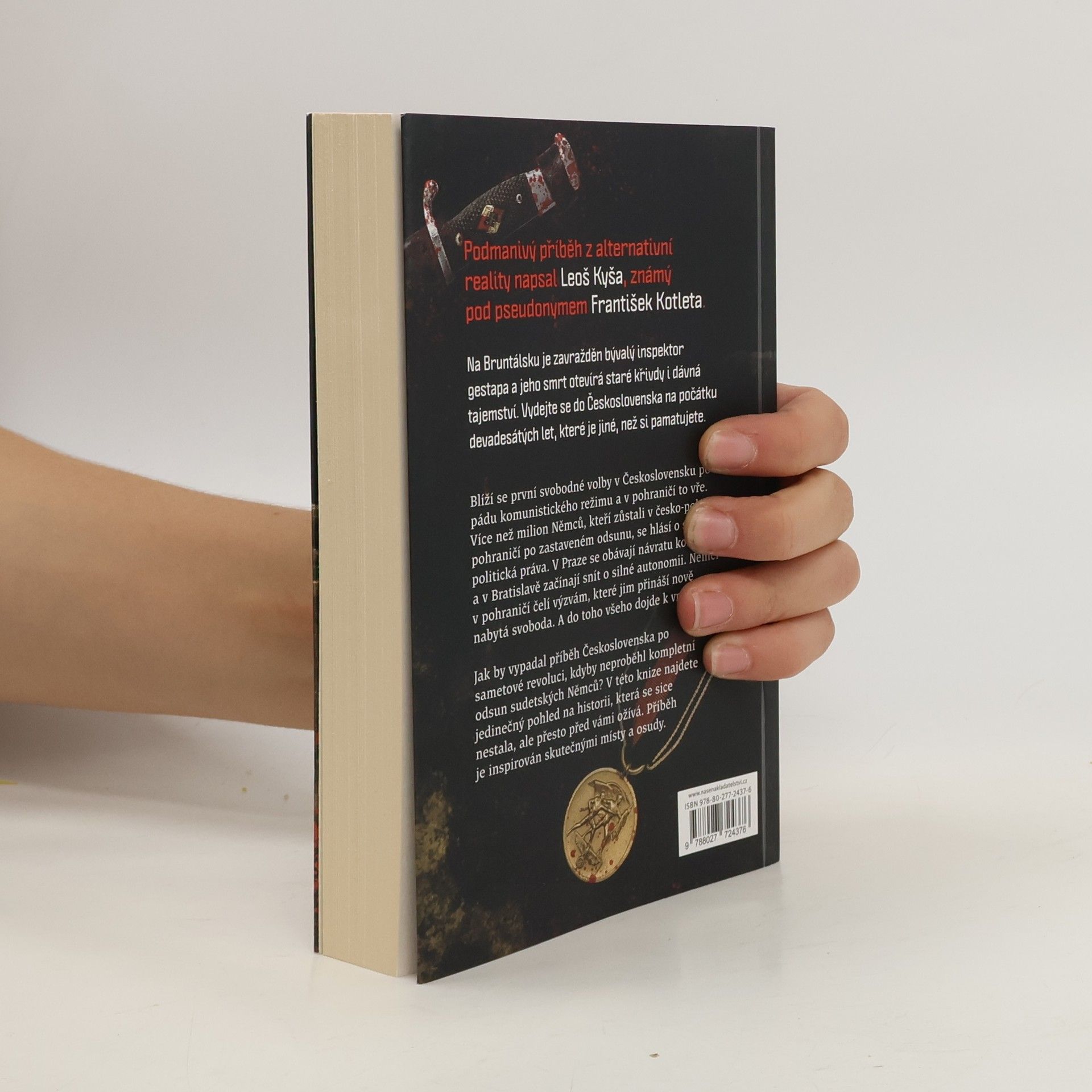 Na Bruntálsku je zavražděn bývalý inspektor Gestapa a jeho smrt otevírá staré křivdy a dávná tajemství. Podmanivý příběh z alternativní reality napsal Leoš Kyša, známý pod pseudonymem František Kotleta. Vydejte se do Československa na počátku devadesátých let, které je jiné, než si pamatujete.Blíží se první svobodné volby v Československu po pádu komunistického režimu a v pohraničí to vře. Více než milion Němců, kteří zůstali v česko-polském pohraničí po zastaveném odsunu, se hlásí o svá politická práva. V Praze se obávají návratu komunismu a v Bratislavě začínají snít o silné autonomii. A nezapomeňte, že dojde k vraždě...Jak by vypadal příběh Československa po Sametové revoluci, kdyby neproběhl kompletní odsun sudetských Němců? V této knize najdete jedinečný pohled na historii, která se sice nestala, ale přesto před vámi ožívá. Příběh je inspirován skutečnými místy a osudy.
