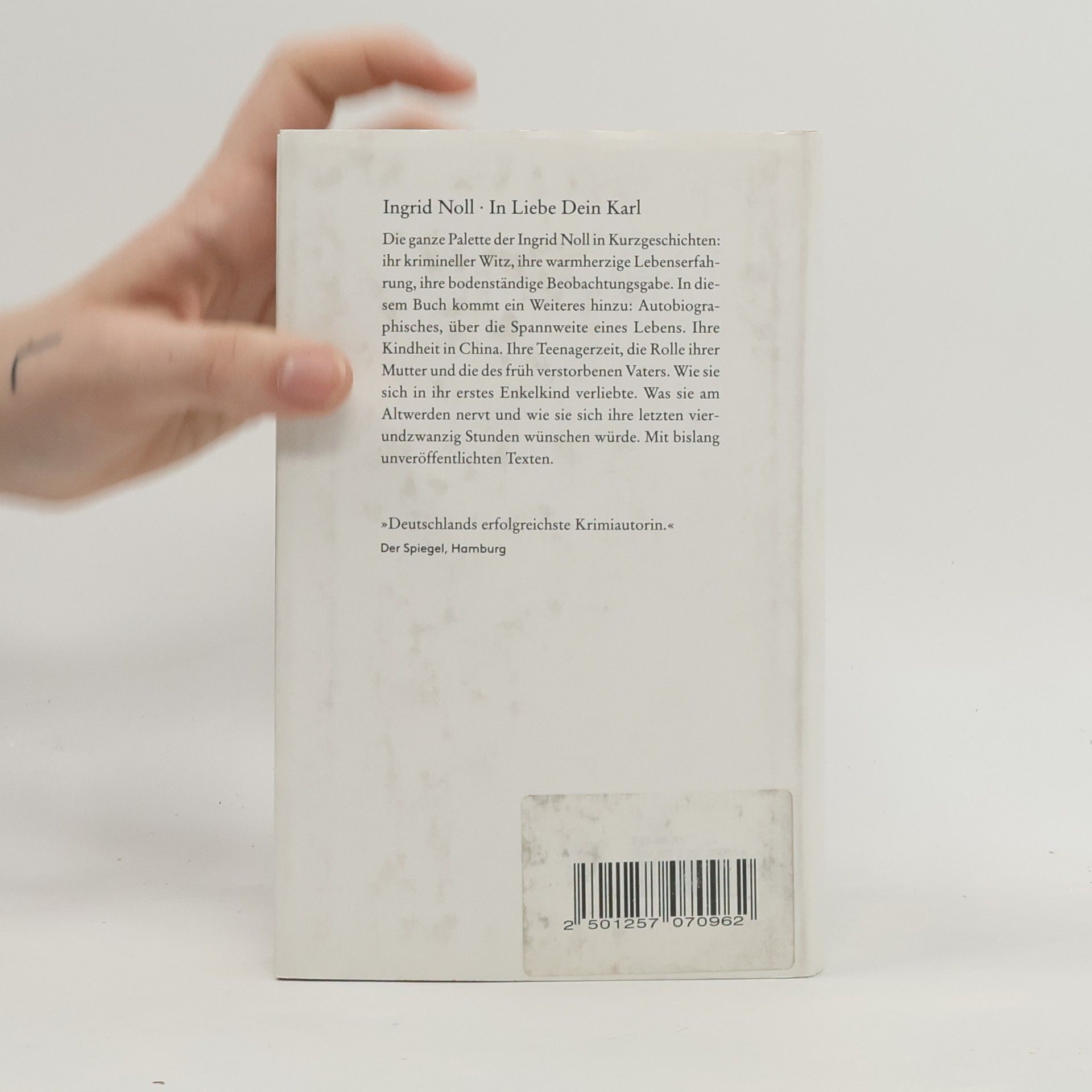 Die ganze Palette der Ingrid Noll in Kurzgeschichten: ihr krimineller Witz, ihre warmherzige Lebenserfahrung, ihre Beobachtungsgabe. In diesem Buch kommt ein Weiteres hinzu: Autobiographisches. Ein Brief an ihre verstorbene Mutter, die Rolle ihres Vaters. Ihre Kindheit in China. Wie sie sich ihre letzten 24 Stunden wünschen würde und was sie am Altwerden nervt.