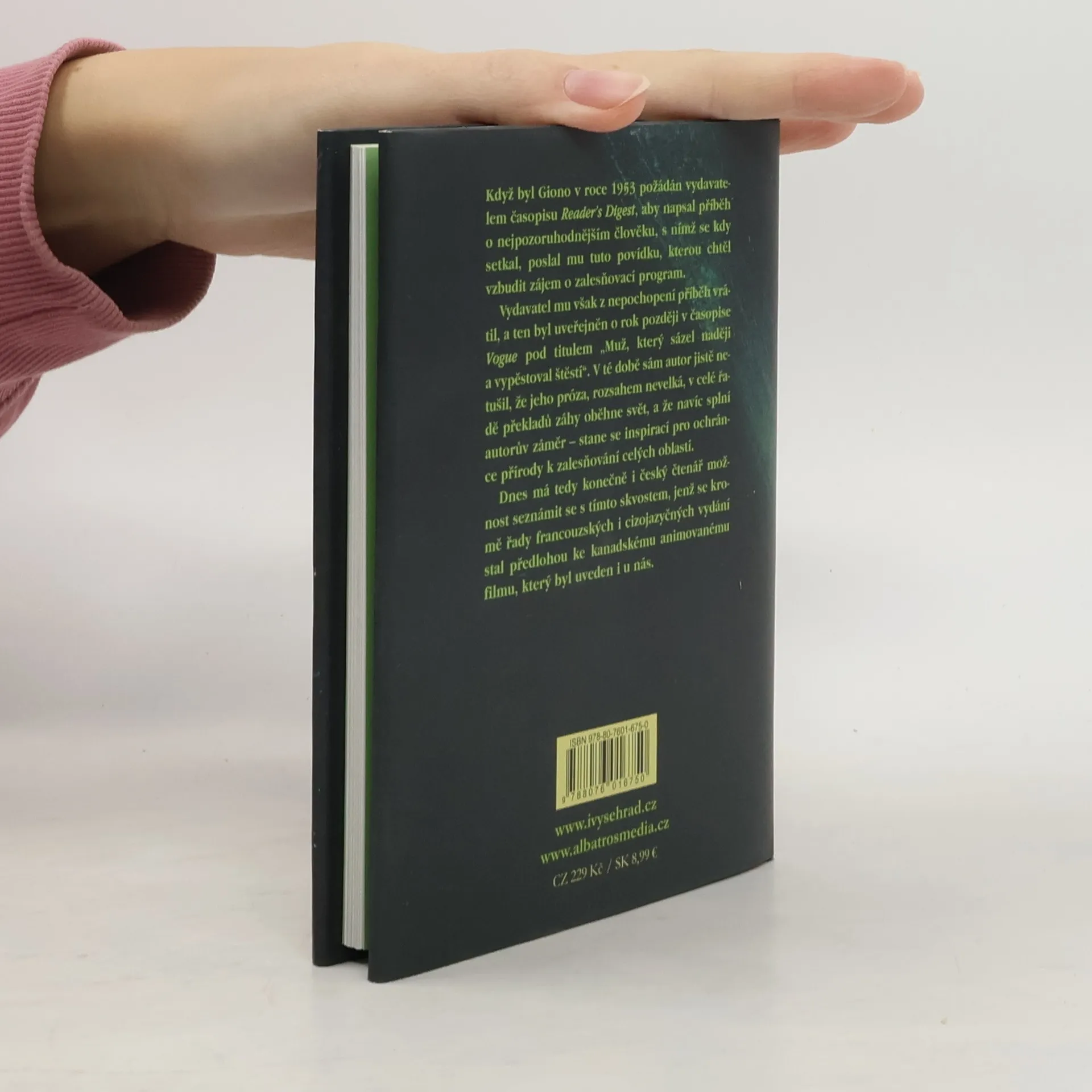Nezapomenutelný příběh probouzející lásku k přírodě Když byl Giono v roce 1953 požádán vydavatelem časopisu Reader’s Dígest, aby napsal příběh o nejpozoruhodnějším člověku, s nímž se kdy setkal, poslal mu tuto povídku, kterou chtěl vzbudit zájem o zalesňovací program.. Ve Vyšehradu vychází již v 8. vydání, opět s ilustracemi Heleny Konstantinové.