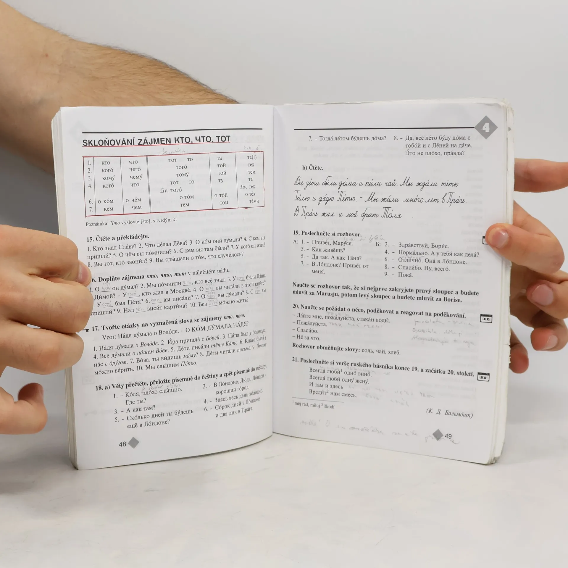 Všem školám, jazykovým kursům pro mládež i pro dospělé a hlavně samoukům je určena nová učebnice současné spisovné ruštiny. Její uživatel si osvojí základy ruského hláskosloví, výslovnosti a gramatiky, naučí se více než 2000 ruských slov a asi 300 ustálených frází. Výběr témat z nejrůznějších oblastí běžného života vede k porozumění čteného i mluveného jazykového projevu, k nácviku vlastní aktivní konverzace i písemného vyjadřování. Učebnice je doplněna přehledem mluvnice, klíčem ke cvičením a rusko-českým slovníkem všech aktivně osvojovaných slov.