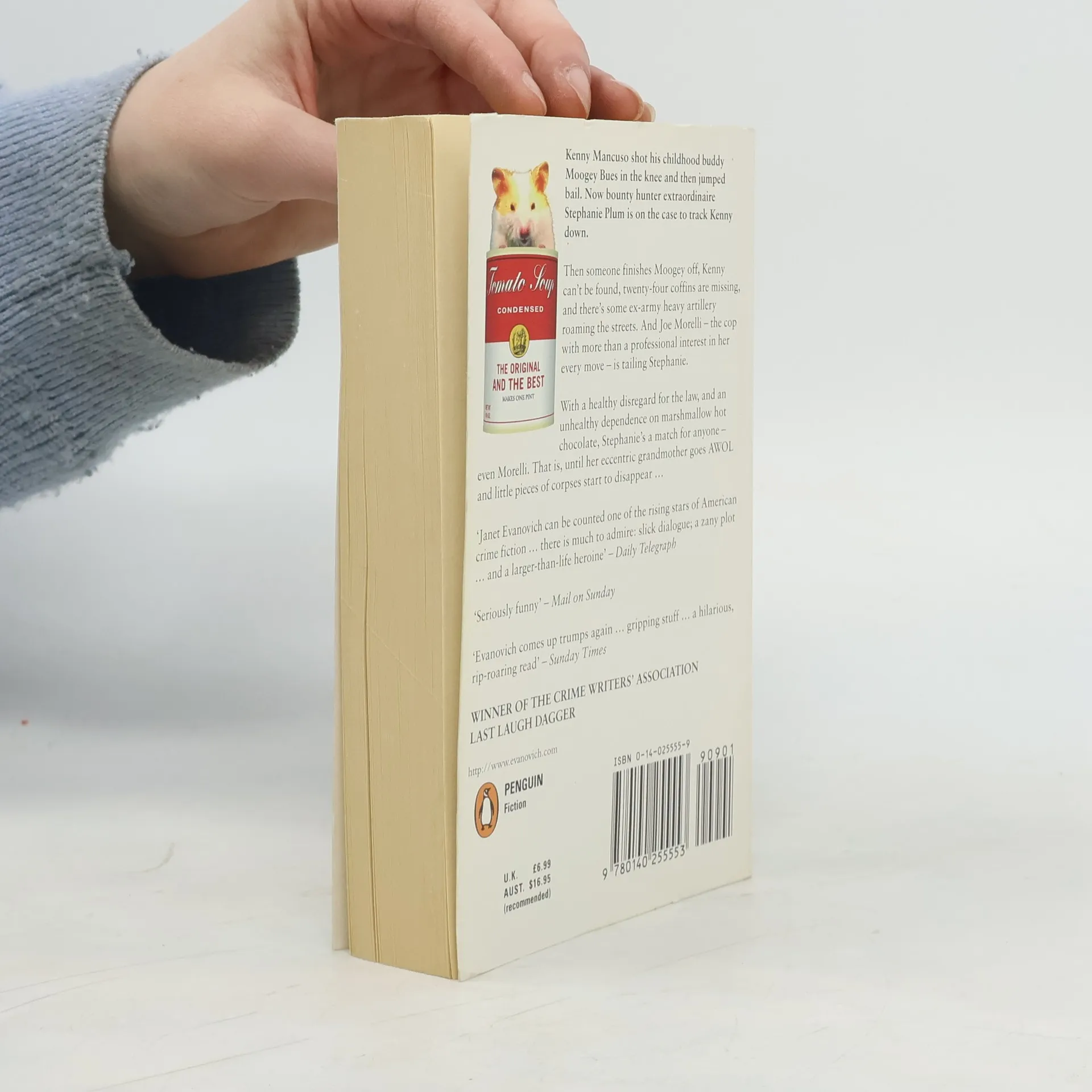 Kenny Mancuso shot his childhood buddy Moogey Bues and then jumped bail. Now bounty hunter Stephanie Plum is on the case to track Kenny down. Then someone finished Moogey off, Kenny can't be found, twenty-four coffins are missing, and there's some ex-army heavy artillery roaming the streets.