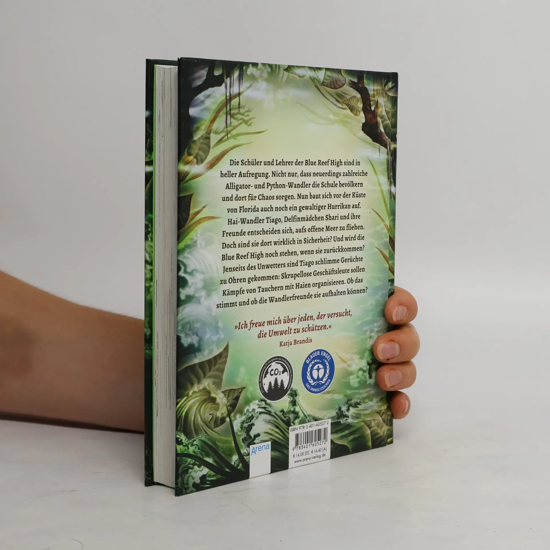 Die Schüler und Lehrer der Blue Reef High sind in Aufregung, da zahlreiche Reptilien- und Python-Wandler für Chaos sorgen. Gleichzeitig baut sich vor der Küste Floridas ein gewaltiger Hurrikan auf. Haiwandler Tiago, Delfinmädchen Shari und ihre Freunde fliehen aufs offene Meer, doch sind sie dort wirklich in Sicherheit? Zudem kursieren Gerüchte über skrupellose Geschäftsleute, die Kämpfe zwischen Tauchern und Haien organisieren. Können die Wandlerfreunde diese Machenschaften aufhalten? In der faszinierenden Unter- und Überwasserwelt der Everglades erleben Tiago und seine Gestaltwandler-Freunde – darunter Delfinwandlerin Shari, Gürteltierwandler Jasper und Rochenwandlerin Finny – spannende Abenteuer. Auch beliebte Figuren aus der Woodwalkers-Serie, wie Carag und Tikaani, haben Gastauftritte. Die Reihe richtet sich an Jungen und Mädchen ab 10 Jahren und bietet packenden Lesestoff, ergänzt durch wunderschöne Illustrationen von Claudia Carls. Alle Bände sind unabhängig von der Woodwalkers-Serie lesbar und erscheinen halbjährlich auf umweltfreundlichem Papier, zertifiziert mit dem „Blauen Engel“.