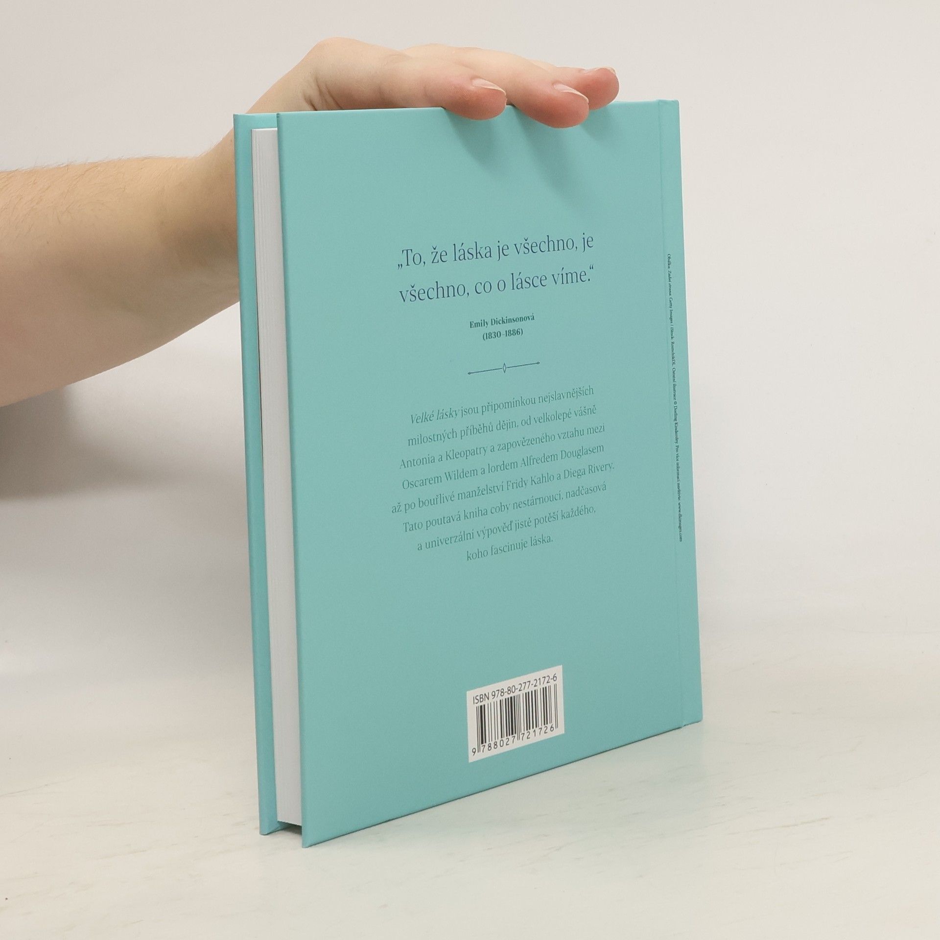„To, že láska je všechno, je všechno, co o lásce víme.“ Emily Dickinsonová (1830-1886) Velké lásky jsou připomínkou nejslavnějších milostných příběhů dějin, od velkolepé vášně Antonia a Kleopatry a zapovězeného vztahu mezi Oscarem Wildem a lordem Alfredem Douglasem až po bouřlivé manželství Fridy Kahlo a Diega Rivery. Tato poutavá kniha coby nestárnoucí, nadčasová a univerzální výpověď jistě potěší každého, koho fascinuje láska.