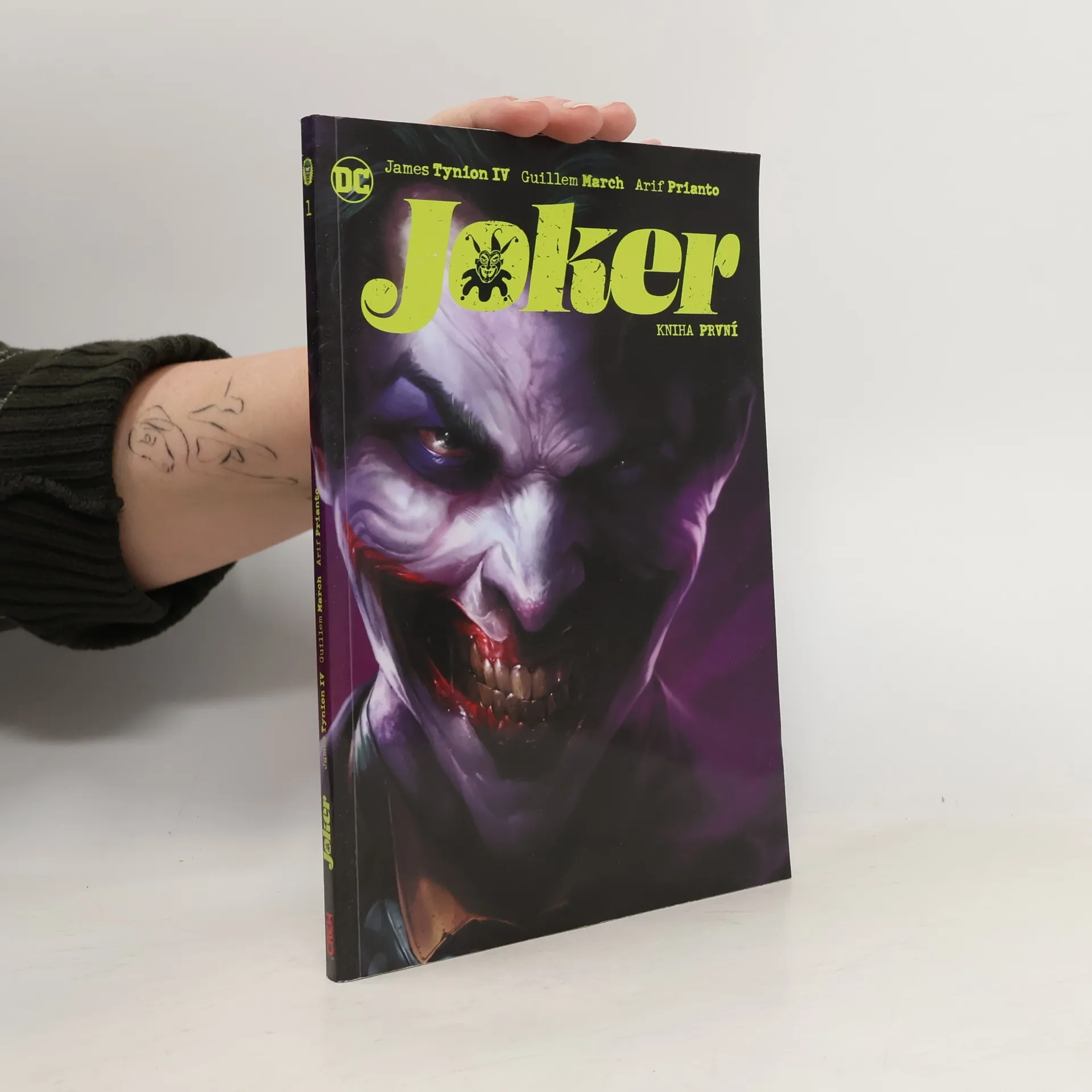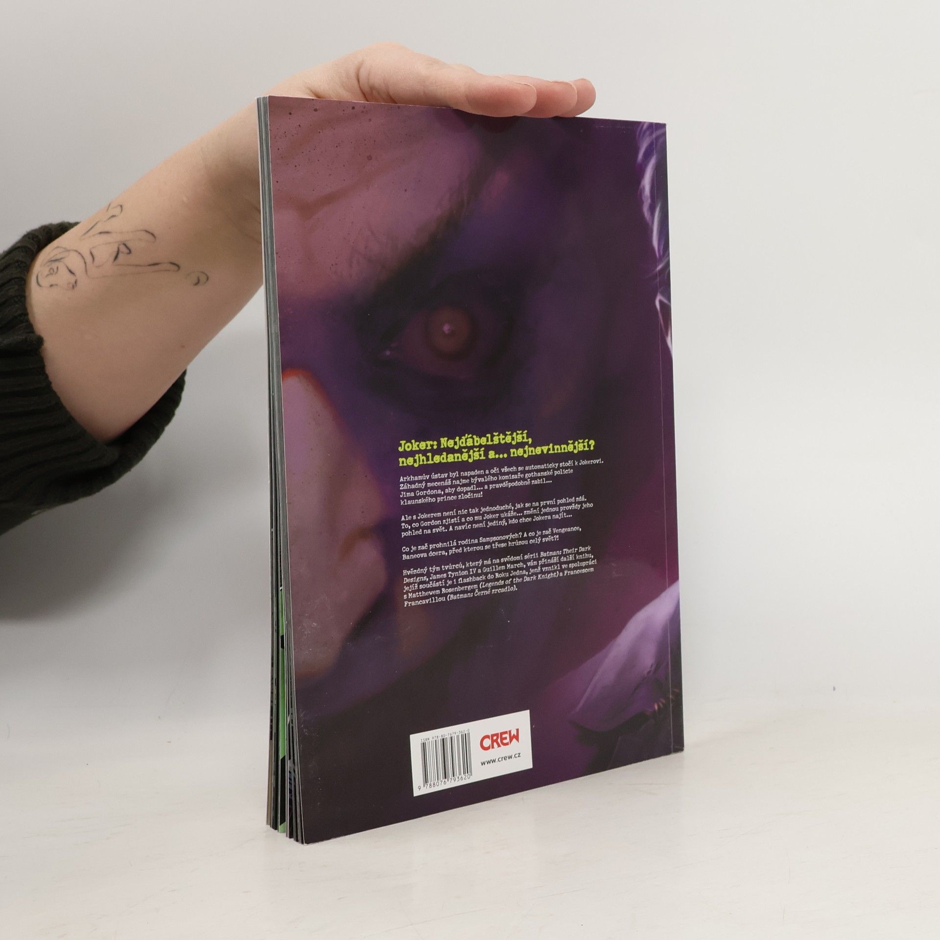 Joker: Nejďábelštější, nejhledanější a… nejnevinnější?Arkhamův ústav byl napaden a oči všech se automaticky stočí k Jokerovi. Záhadný mecenáš najme bývalého komisaře gothamské policie Jima Gordona, aby dopadl… a pravděpodobně zabil… klaunského prince zločinu!Ale s Jokerem není nic tak jednoduché, jak se na první pohled zdá. To, co Gordon zjistí a co mu Joker ukáže… změní jednou provždy jeho pohled na svět. A navíc není jediný, kdo chce Jokera najít…Co je zač prohnilá rodina Sampsonových? A co je zač Vengeance, Baneova dcera, před kterou se třese hrůzou celý svět?!Hvězdný tým tvůrců, který má na svědomí sérii Batman: Their Dark Designs, James Tynion IV a Guillem March, vám přináší další knihu, jejíž součástí je i flashback do Roku Jedna, jenž vznikl ve spolupráci s Matthewem Rosenbergem (Legends of the Dark Knight) a Francescem Francavillou (Batman: Černé zrcadlo).