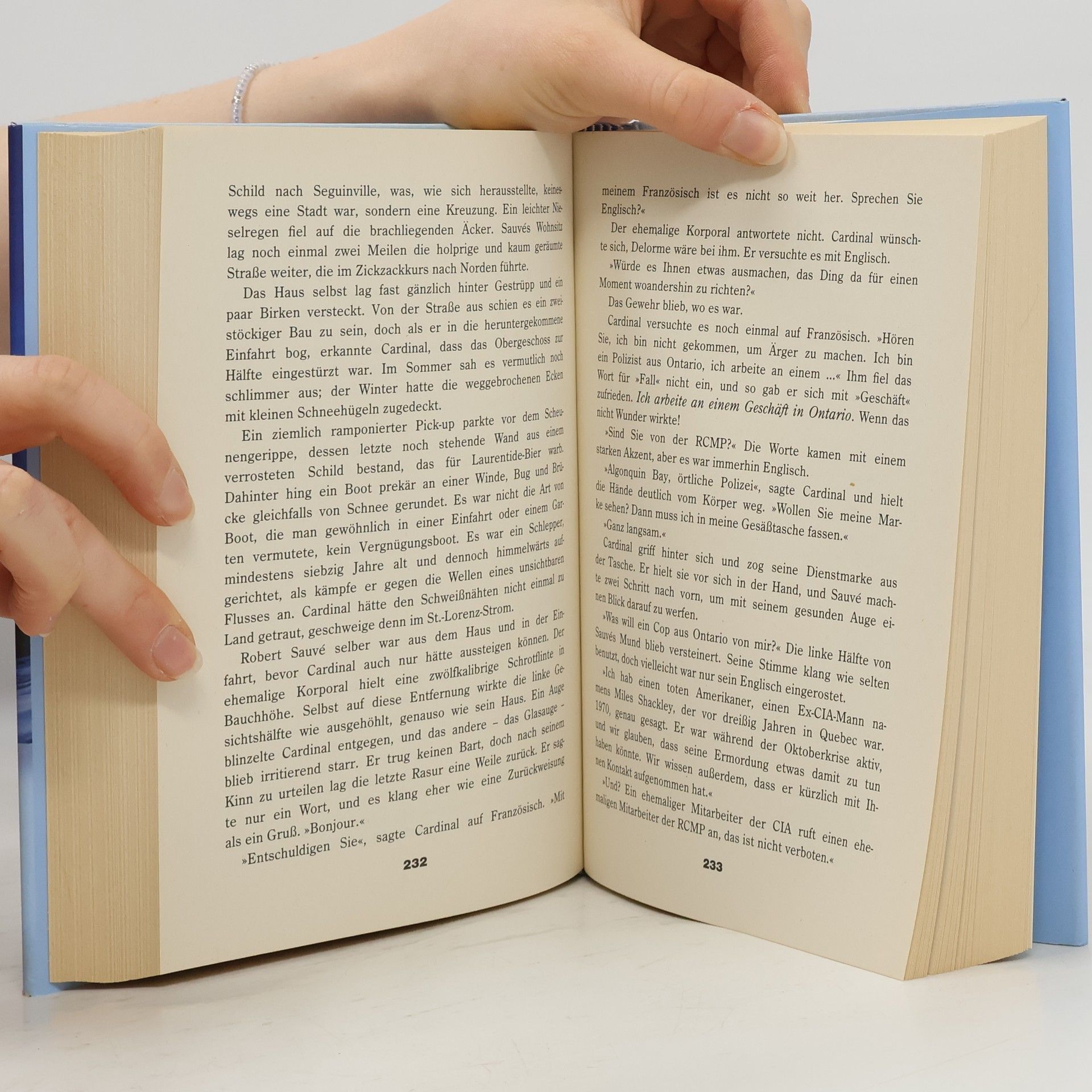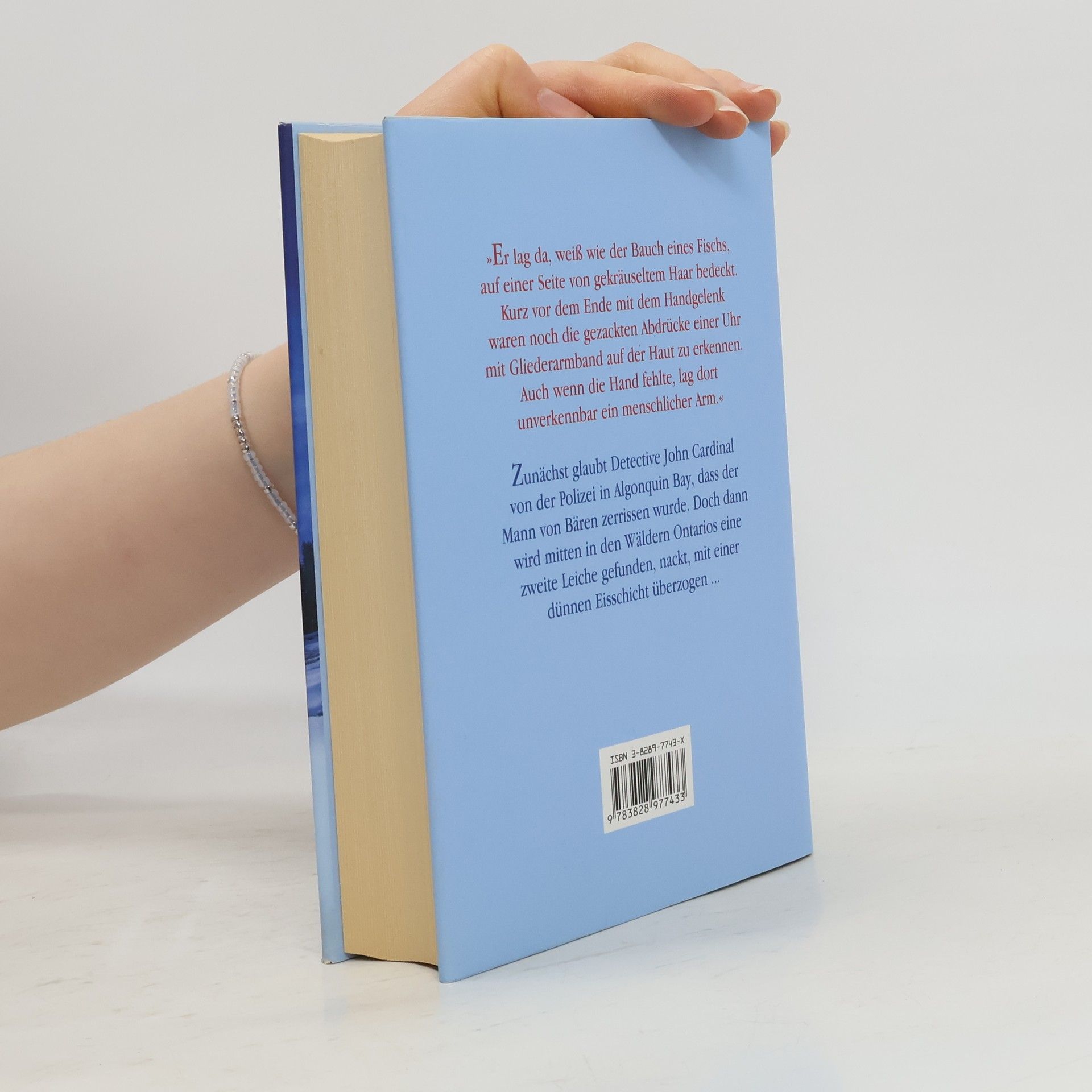Er lag da, weiß wie der Bauch eines Fischs, auf einer Seite von gekräuseltem Haar bedeckt. Kurz vor dem Ende mit dem Handgelenk waren noch die gezackten Abdrücke einer Uhr mit Gliederarmband auf der Haut zu erkennen. Auch wenn die Hand fehlte, lag dort unverkennbar ein menschlicher Arm .. Zunächst glaubt Detektive John Kardinal von der Polizei in Algonquin Bay, dass der Mann von Bären gerissen wurde. Doch dann wird mitten in den Wäldern Ontarios eine zweite Leiche gefunden, nackt , mit einer dünnen Eisschicht überzogen.