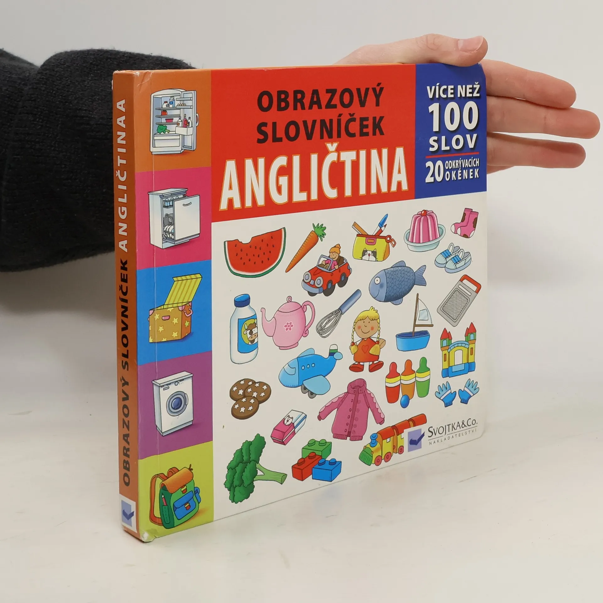 Tento slovníček je plný obrázků, díky nimž si děti obohatí představivost a slovní zásobu. Obrázky jsou jednoduché, snadno přiřaditelné k jednotlivým pojmům. Kniha děti zaujme také díky odkrývacím okénkům.