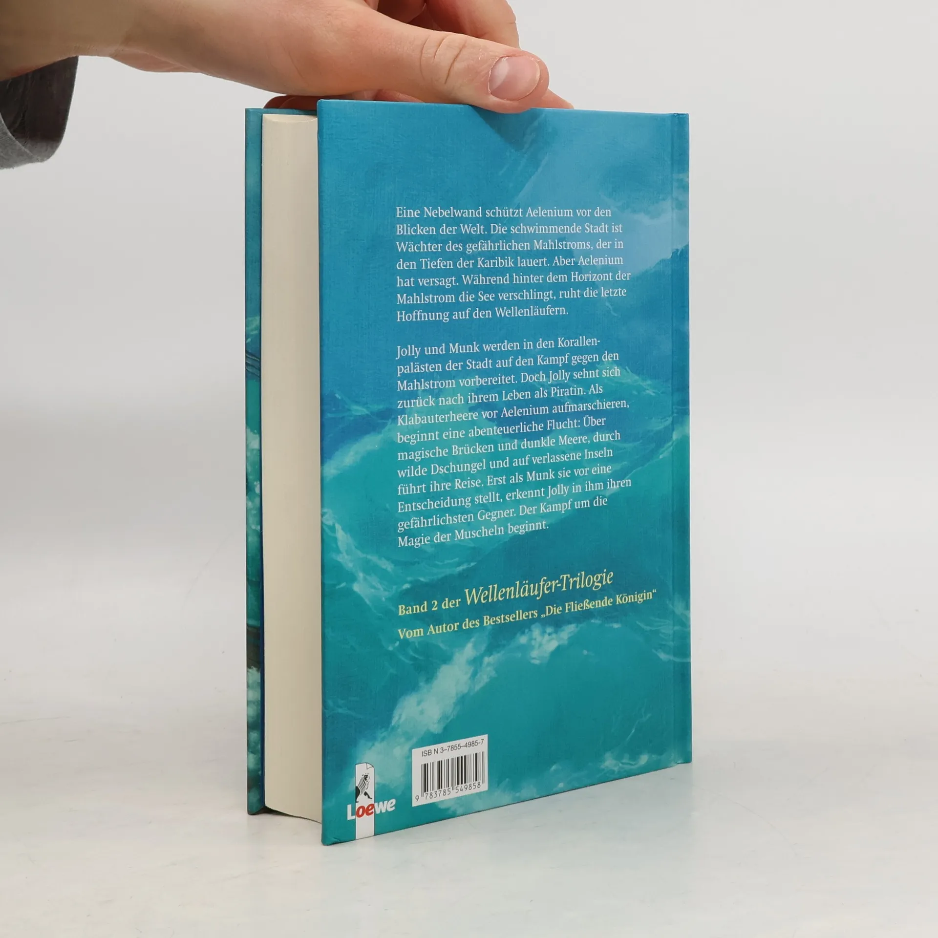 Eine Nebelwand schützt Aelenium vor den Blicken der Welt. Die schwimmende Stadt in der Karibik ist Wächter des gefährlichen Mahlstroms, der in der Tiefe des Meeres lauert. Aber Aelenium hat versagt. Während hinter dem Horizont der Mahlstrom die See verschlingt, ruht die letzte Hoffnung auf den Wellenläufern. Jolly und Munk werden in den Korallenpalästen der Stadt auf den Kampf gegen den Mahlstrom vorbereitet. Doch Jolly sehnt sich zurück nach ihrem Leben als Piratin. Als Klabauterheere vor Aelenium aufmarschieren, beginnt für sie eine abenteuerliche Flucht: Über magische Brücken und dunkle Meere, durch wilde Dschungel und auf verlassene Inseln führt ihre Reise. Als Munk sie vor eine Entscheidung stellt, beginnt der Kampf um die Magie der Muscheln.