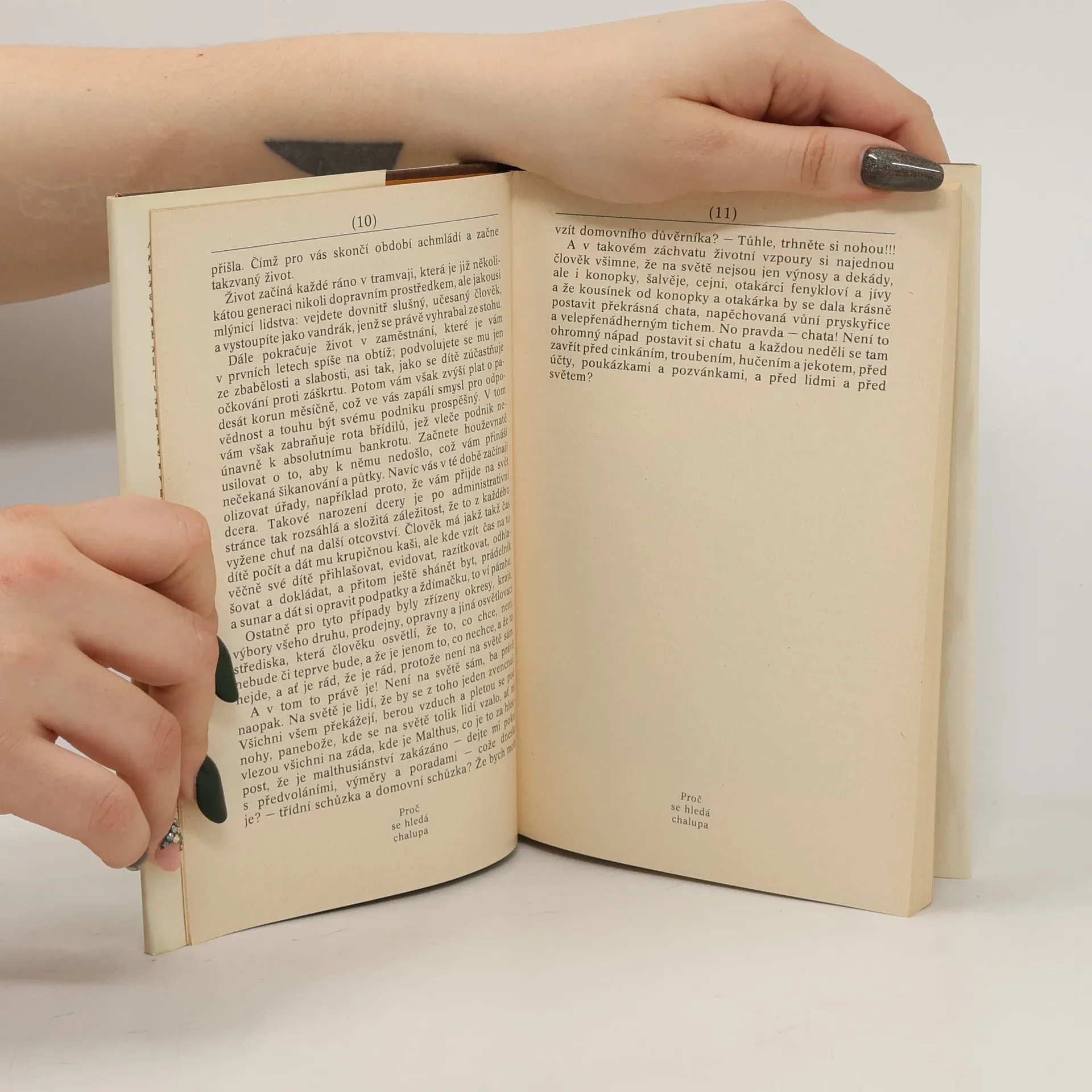 Abyste tomu rozuměli: tato knížka není návodem, nýbrž přiznáním jak se dělá chalupa, když na to člověk nemá ani průpravu, ani znalosti, ani ruce nadané vrozenou obratností, a pokouší se to všechno překlenout nadšením, vírou a láskou. Kdybyste toto upozornění přehlédli, mohli byste se svou chalupou špatně skončit, třebaže začínáte velice dobře — vyhledáváním odborné literatury a touhou po sebevzdělání. Tahle knížka není ani tak odborná, jako spíš upřímná. Vznikala v letech, kdy se začala zdvihat mocná vlna chalupářství. V letech, kdy lidé jako by se rozkročili přes několik století najednou: zrozeni ve století dvacátém stojí jednou nohou v kosmickém, dvacátém prvním století, zatímco tou druhou, chalupnickou nohou, se opírají o devatenáctý či ještě dřívější věk doškových a šindelových střech svých pradědů. Od pondělního rána do pátečního odpoledne stojí za pultem, u elektronkových počítačů, soustruhů, řídicích pák či registratur a v pátečním podvečeru — obtěžkáni nevídaným množstvím převelkých a nesourodých zavazadel — navracejí se do časů F. L. Veka, M. D. Rettigové či rychtáře Vaváka. Jenomže se nepřevlékají za F. L. Věka, nýbrž do zednického, zahradnického či jinak hastrošovitého oblečení a až do nedělního podvečera zakoušejí dobrodružství, hrdinství, útrapy i velkolepost fyzické práce. Chci jim — spolu s Vladimírem Renčínem — vzdát touto knížkou alespoň drobný dík. Za to, že po těch sobotách a nedělích zachránili více chalup, než kolik jich je ve všech evropských skansenech. Za to, že se upřímně a bez proklamací naučili ctít a obdivovat práci lidských rukou. A že se naučili v tichých stěnách svých staronových stavení ani ne tak odpočívat, jako spíš přemýšlet. Kdyby se naučili jenom tohle, byl by to dostatečný důvod, abychom my dva sedli ke svým stolům a připravili jim s nesmělým, ale vděčným srdcem tyto stránky. Už proto, že jsme jedněmi z nich.