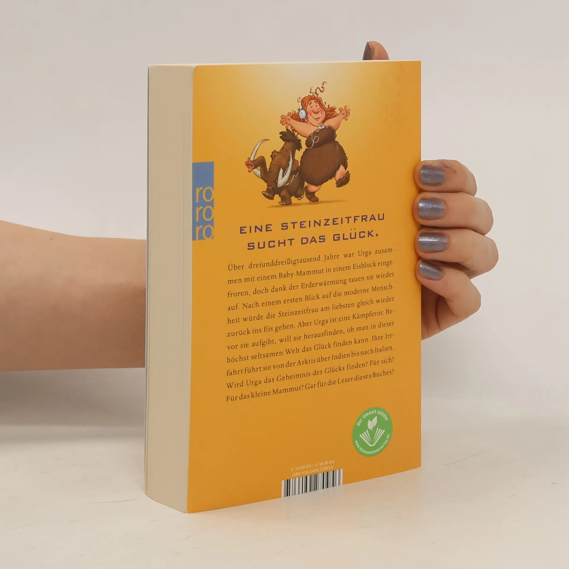 Über dreiunddreißigtausend Jahre war Urga zusammen mit einem Baby-Mammut in einem Eisblock eingefroren, doch dank der Erderwärmung tauen sie wieder auf. Nach einem ersten Blick auf die moderne Menschheit würde die Steinzeitfrau am liebsten gleich wieder zurück ins Eis gehen. Aber Urga ist eine Kämpferin: Bevor sie aufgibt, will sie herausfinden, ob man in dieser höchst seltsamen Welt das Glück finden kann. Ihre Irrfahrt führt sie von der Arktis über Indien bis nach Italien. Wird Urga das Geheimnis des Glücks finden? Für sich? Für das kleine Mammut?