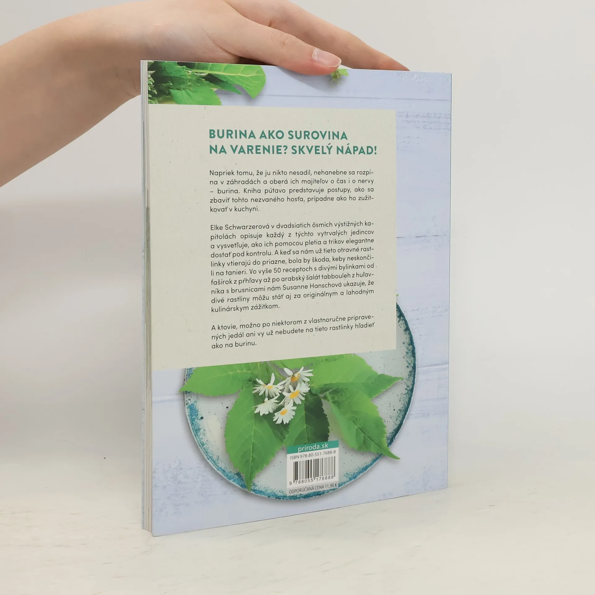 Bojovať s burinou, alebo ju jednoducho zjesť? 50 skvelých receptovBURINA AKO SUROVINA NA VARENIE? SKVELÝ NÁPAD!Napriek tomu, že ju nikto nesadil, nehanebne sa rozpína v záhradách a oberá ich majiteľov o čas i o nervy – burina. Kniha pútavo predstavuje postupy, ako sa zbaviť tohto nezvaného hosťa, prípadne ako ho zužitkovať v kuchyni.Elke Schwarzerová v dvadsiatich ôsmich výstižných kapitolách opisuje každú z týchto tvrdohlavých osobností a vysvetľuje, ako ich pomocou pletia a trikov elegantne dostať pod kontrolu. A keď sa nám už tieto otravné rastlinky vtierajú do priazne, bola by škoda, keby neskončili na tanieri. Vo vyše 50 receptoch s divými bylinkami od fašírok z pŕhľavy až po arabský šalát tabbouleh z huľavníka s brusnicami nám Susanne Hanschová ukazuje, že divé rastliny môžu stáť aj za originálnym a lahodným kulinárskym zážitkom.A ktovie, možno po niektorom z vlastnoručne pripravených jedál ani vy už nebudete na tieto rastlinky hľadieť ako na burinu.