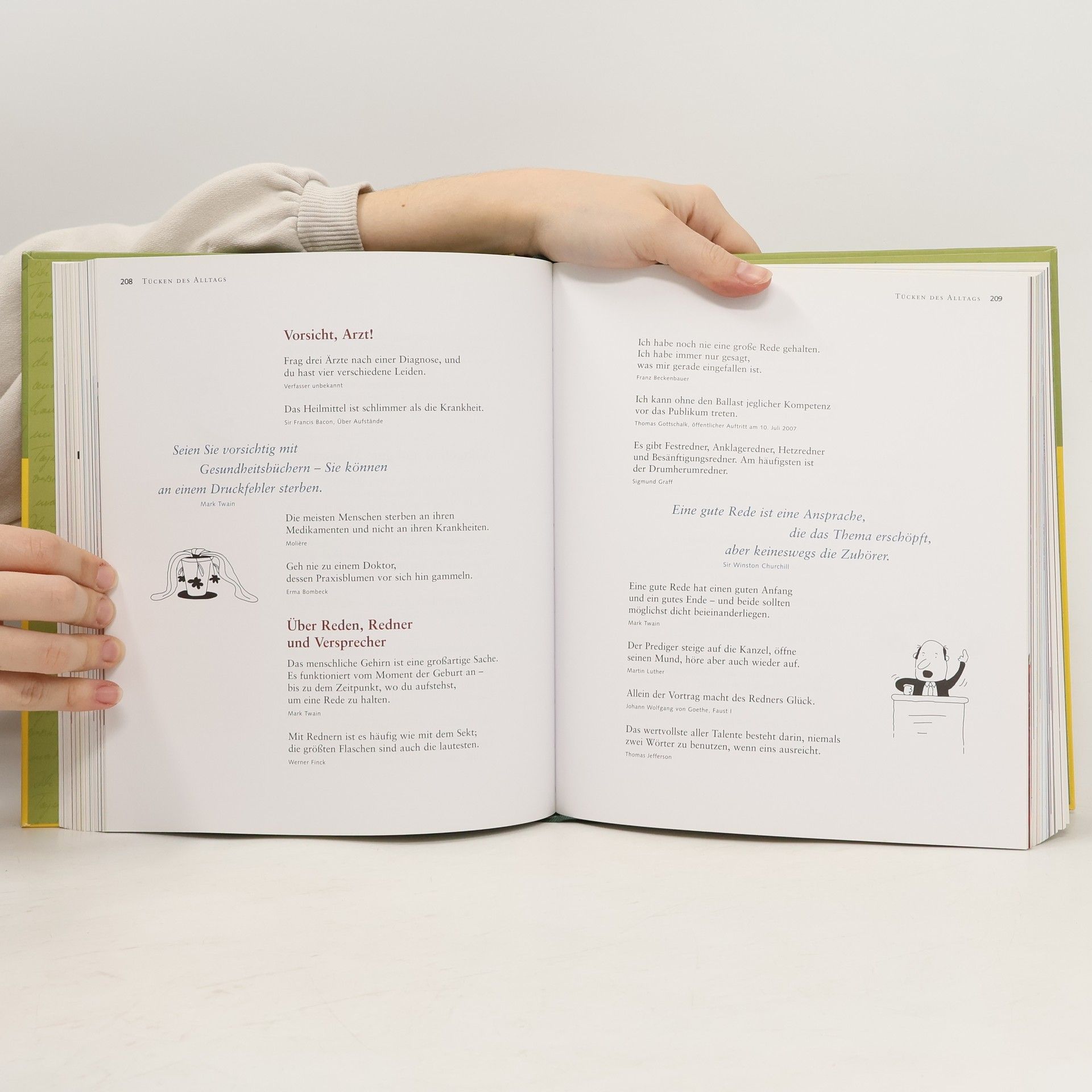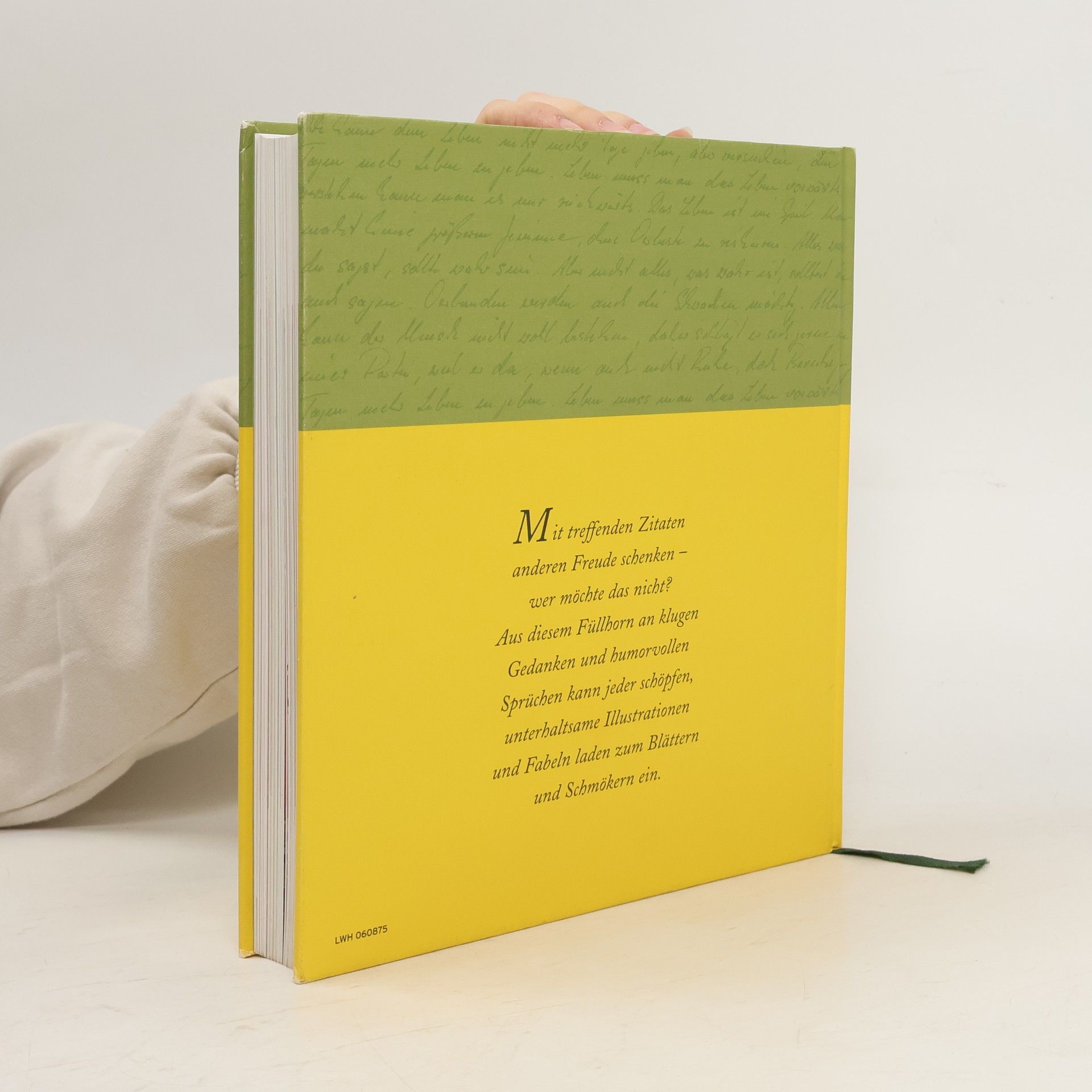 Die passenden Worte zu finden, ist nicht immer einfach. Oft fehlt einem nur die gute Idee für den Anfang oder ein Motto. Mit mehr als 2000 Lebensweisheiten hilft dieses Buch weiter: Die sorgfältig ausgewählten Zitate reichen von der Antike bis zur Gegenwart, stammen von Dichtern, Denkern und Menschen der Zeitgeschichte. Sie sind so übersichtlich gegliedert, dass man schnell das richtige Zitat für jeden Zweck findet. Reichhaltig illustriert und mit Fabeln angereichert, lädt das Buch auch zum Blättern und Schmökern, Innehalten und Schmunzeln ein - so nimmt man es immer wieder gern in die Hand, sei es für zwei Stunden oder auch nur fünf Minuten. Man wird in jedem Fall Gewinn daraus ziehen.
