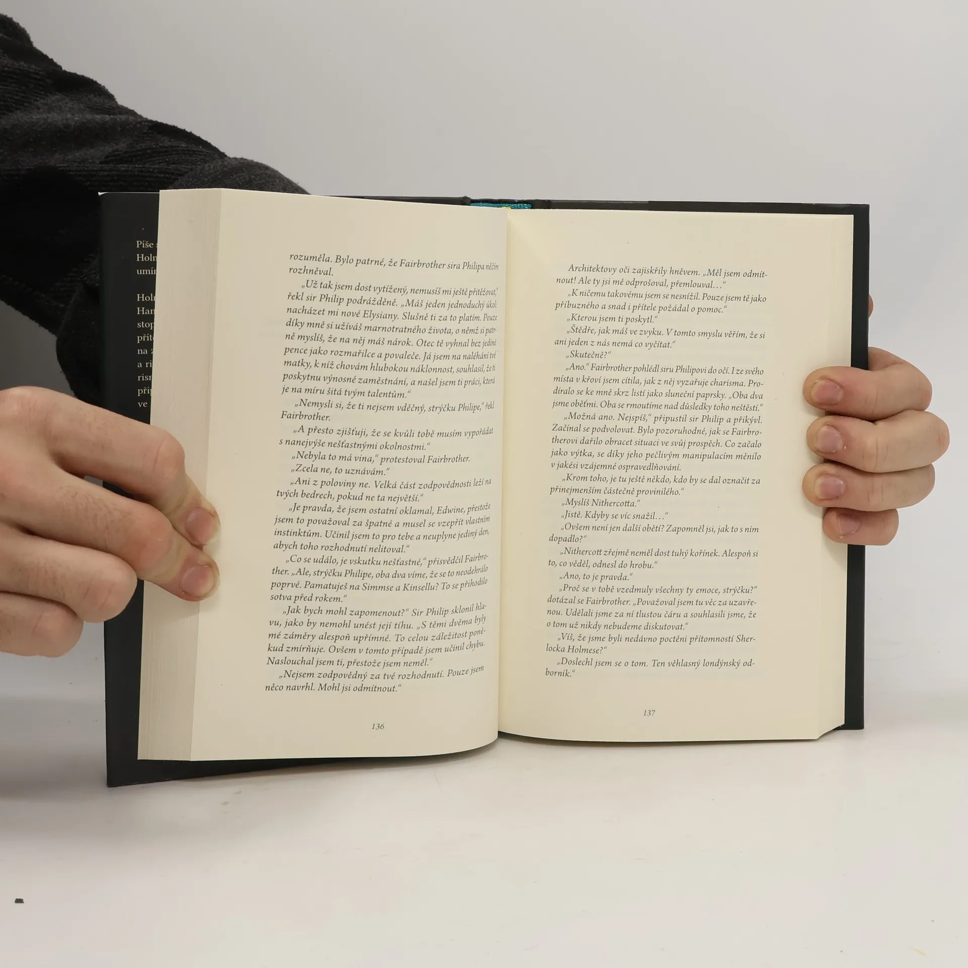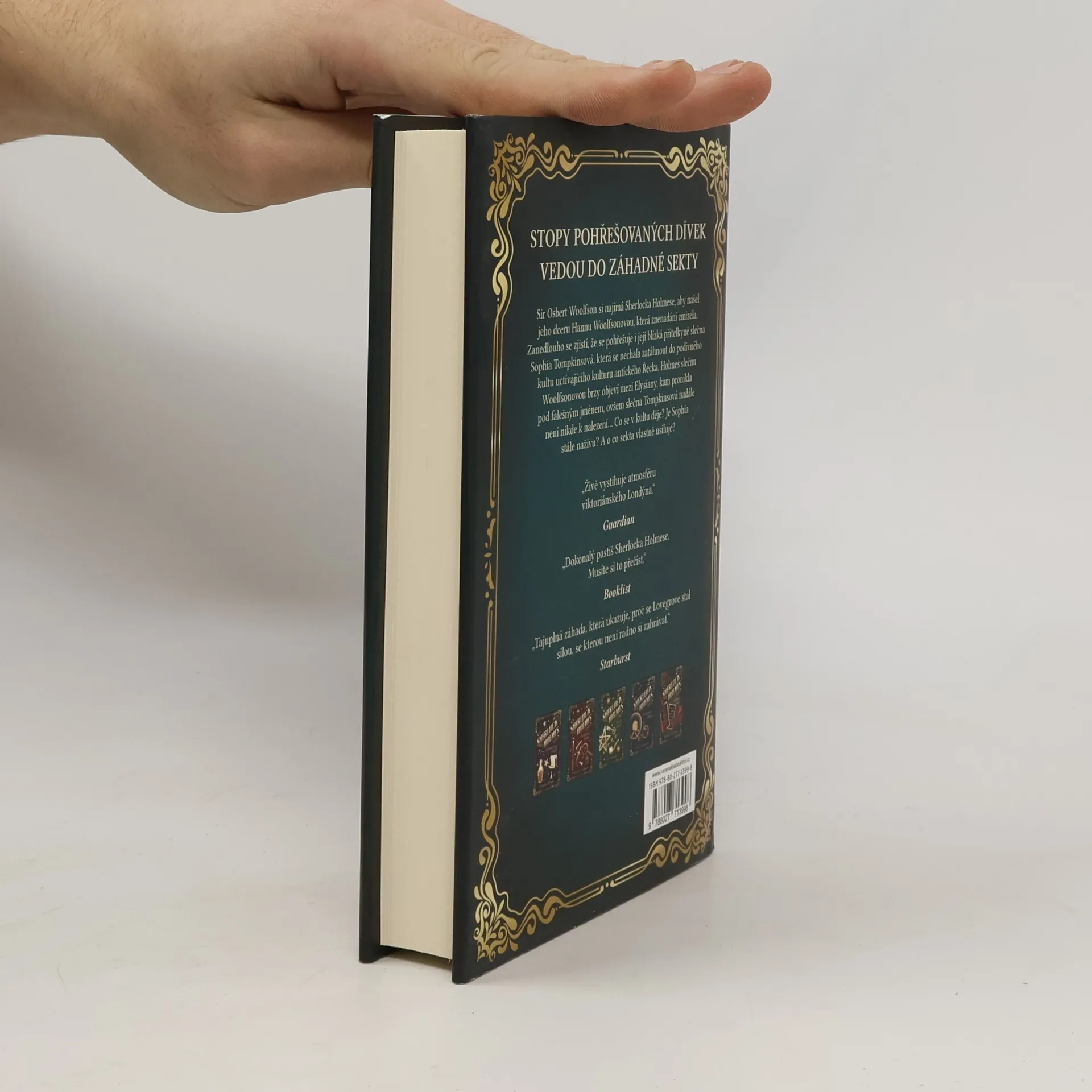 Další volné pokračování detektivních románů anglického autora, který navazuje na slavného Sherlocka Holmese. Píše se rok 1895 a novým klientem Sherlocka Holmese je soudce nejvyššího soudu, jehož umíněná dcera se beze stopy ztratila. Holmes a Watson zjistí, že nezvěstná žena Hannah Woolfsonová se sama vydala po stopách jiné pohřešované osoby, své blízké přítelkyně Sophie. Sophii zrekrutovala skupina známá jako Elysiané, sekta posedlá mýty a rituály antického Řecka, kterou vede charismatický sir Philip Buchanan. Hannah se připojila k Elysianům pod falešným jménem ve snaze rozkrýt přítelkynin osud. Nakladatelská anotace. Kráceno.