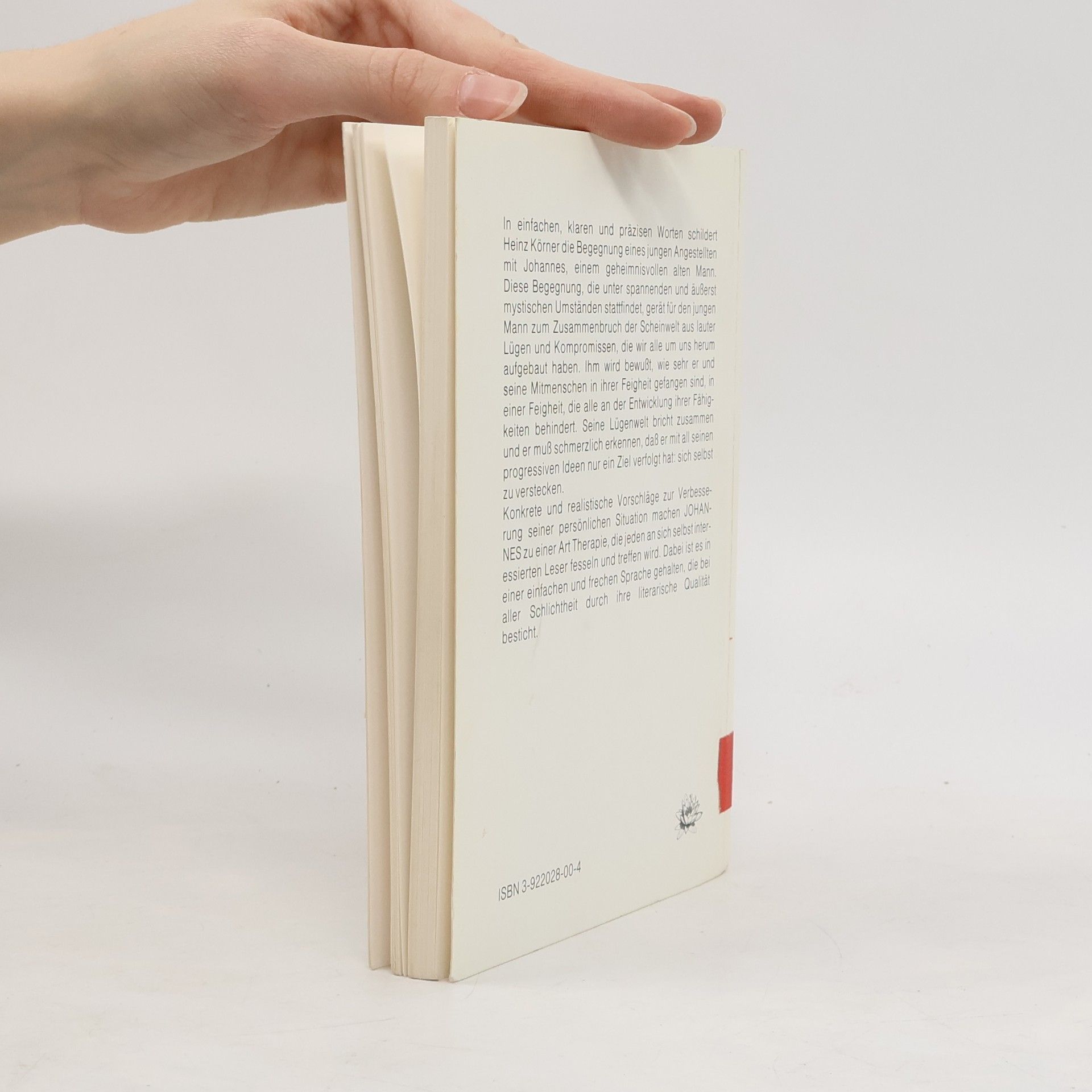 In einfachen, klaren und präzisen Worten schildert Heinz Körner die Begegnung eines jungen Angestellten mit Johannes, einem geheimnisvollen alten Mann. Diese Begegnung, die unter spannenden und äußerst mystischen Umständen stattfindet, gerät für den jungen Mann zum Zusammenbruch der Scheinwelt aus lauter Lügen und Kompromissen, die wir alle um uns herum aufgebaut haben. Ihm wird bewußt, wie sehr er und seine Mitmenschen in ihrer Feigheit gefangen sind, in einer Feigheit, die alle an der Entwicklung ihrer Fähigkeiten behindert. Seine Lügenwelt bricht zusammen und er muß schmerzlich erkennen, daß er mit all seinen progressiven Ideen nur ein Ziel verfolgt hat: sich selbst zu verstecken. Konkrete und realistische Vorschläge zur Verbesserung seiner persönlichen Situation machen JOHANNES zu einer Art Therapie, die jeden an sich selbst interessierten Leser fesseln und treffen wird. Dabei ist es in einer einfachen und frechen Sprache gehalten, die bei aller Schlichtheit durch ihre literarische Qualität besticht.