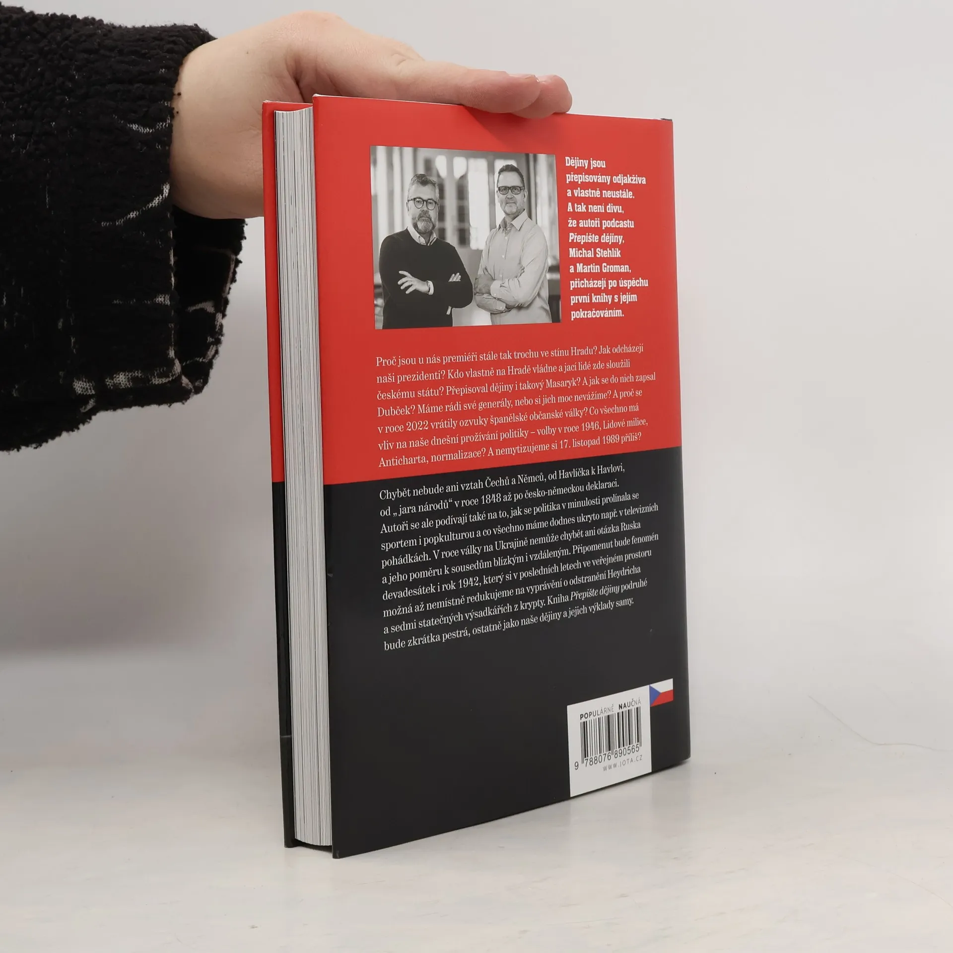 Oblíbený podcast podruhé v knižní podobě!Dějiny jsou přepisovány odjakživa a vlastně stále. A tak není divu, že autoři podcastu Přepište dějiny Michal Stehlík a Martin Groman po úspěšné první knize přicházejí s jejím pokračováním. Proč jsou u nás premiéři stále tak trochu ve stínu Hradu? Jak odcházejí naši prezidenti? A kdo vlastně na Hradě vládne a jací lidé zde sloužili českému státu? Přepisoval dějiny i takový Masaryk? A jak se do nich zapsal Dubček? Máme rádi své generály, nebo si jich moc nevážíme, a proč se v roce 2022 vrátily ozvuky španělské občanské války?Chybět nebude ani vztah Čechů a Němců a to od Havlíčka k Havlovi, tedy od jara národů v roce 1848 po česko-německou deklaraci. Co všechno má vliv na naše dnešní prožívání politiky – volby v roce 1946, Lidové milice, Anticharta, normalizace? A nemytizujeme si 17. listopad 1989 příliš? Autoři se ale podívají také na to, jak se v minulosti proplétala politika se sportem i popkulturou a co všechno máme dodnes ukryto v televizních pohádkách.V roce války na Ukrajině nemůže chybět ani téma Rusko a jeho poměr k sousedům blízkým i vzdáleným. Připomenut bude fenomén devadesátek i rok 1942, který si v posledních letech možná až nemístně redukujeme ve veřejném prostoru na vyprávění o odstranění Heydricha a sedmi statečných výsadkářích z krypty. Kniha Přepište dějiny podruhé bude zkrátka pestrá, ostatně jako samy naše dějiny a jejich výklady.