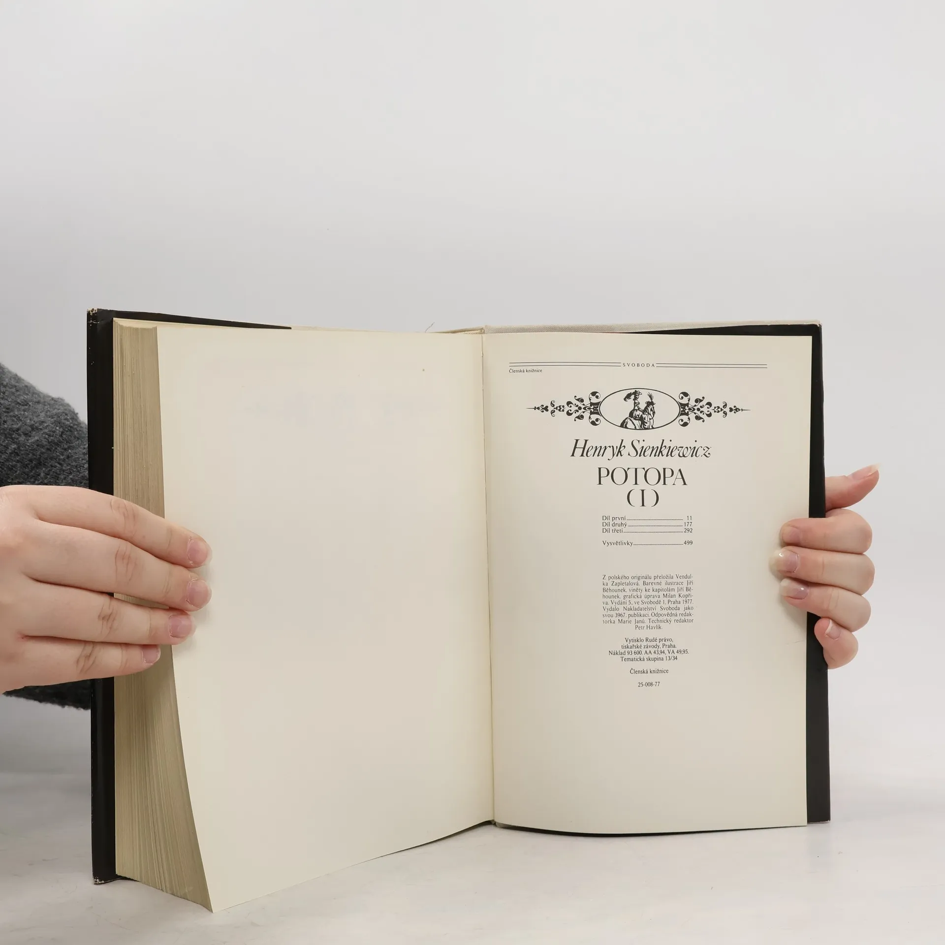 Druhá část monumentálního románu z polských dějin, pojednávající o jedné z nejdivočejších epoch polského království. Velkolepý román polského spisovatele, nositele Nobelovy ceny, je prostředním, dějově zcela samostatným dílem Sienkiewiczovy slavné historické trilogie. Potopa se odehrává na počátku druhé poloviny sedmnáctého století, za polsko-švédské války. Jedinečně zachycený obraz této bouřlivé doby se před námi promítá jako na širokém plátně: napínavé zápletky, barvité a věrohodné boje a bitvy, i život na šlechtických dvorech. Do popředí však zřetelně vystupují soukromé osudy hlavních hrdinů, plné nenadálých zvratů, bloudění, pochybností, ale i upřímných nadějí, statečnosti a velké lásky.