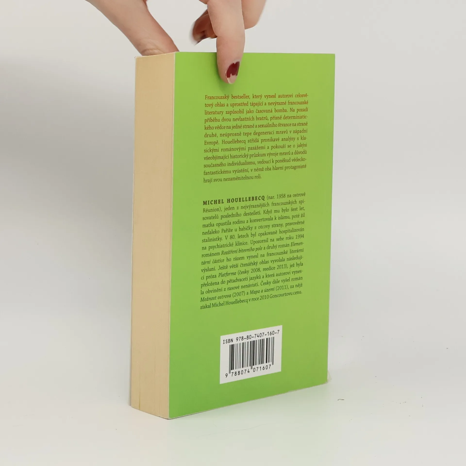 Francouzský bestseller z roku 1998, který vynesl autorovi celosvětový ohlas. Uprostřed tápající a nevýrazné literatury zapůsobil jako časovaná bomba. Houellebecq v něm rozvíjí témata, která rozpracoval již v prvotině Rozšíření bitevního pole (česky 2004). Na pozadí příběhu dvou nevlastních bratrů, přísně deterministického vědce na jedné straně a sexuálního štvance na straně druhé, neúprosně tepe degeneraci mravů v Západní Evropě, kde „pocity lásky, něhy a lidské pospolitosti do značné míry zmizely“. Za střídání pronikavých analýz a klasických románových pasáží se pokouší o jakýsi všeobjímající historický průzkum vývoje mravů a důvodů současného individualismu, vedoucí k poněkud vědeckofantastickému vyústění, v němž oba hlavní protagonisté zastávají, každý svým způsobem, nezaměnitelnou roli. Pokus o „totální“ román konce století.