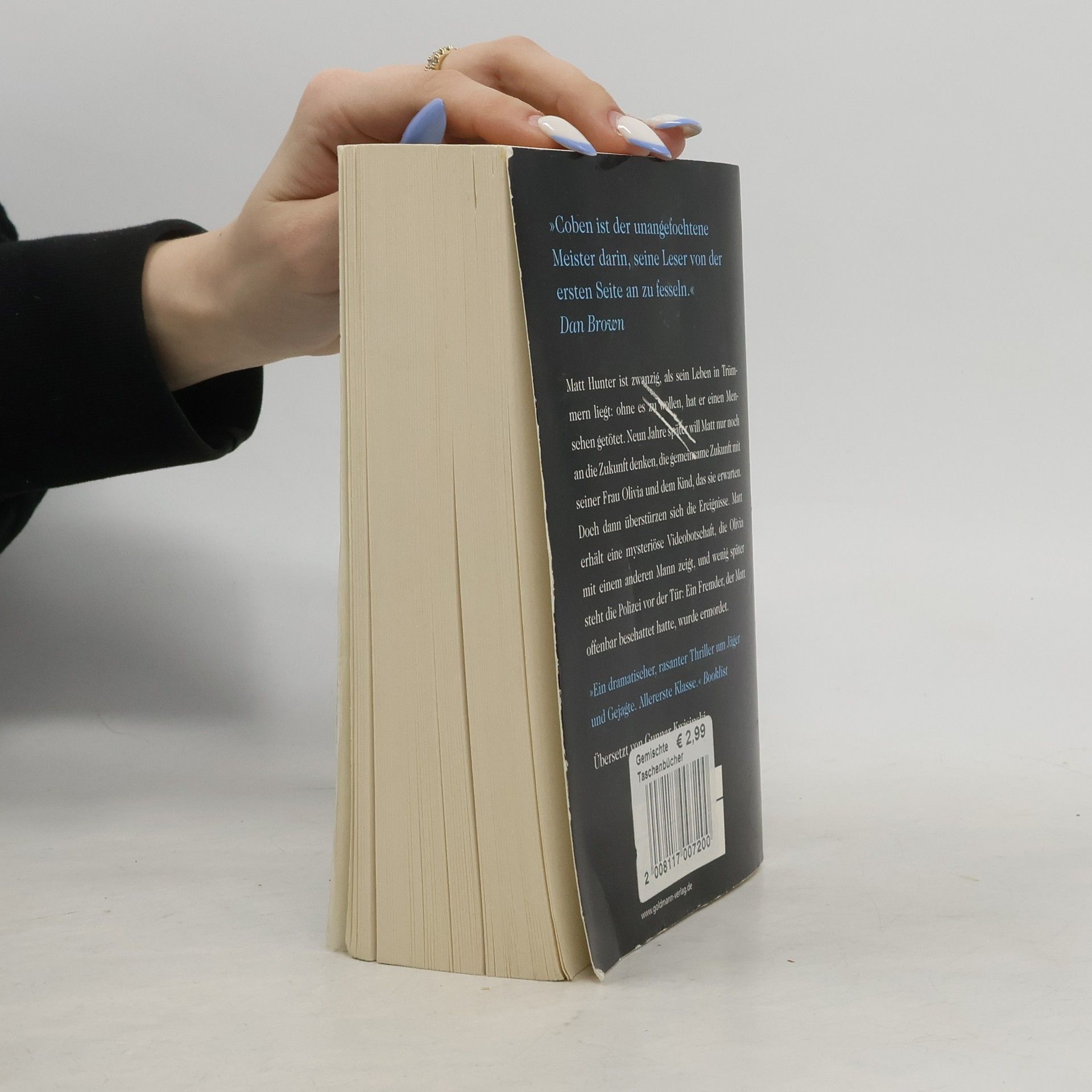 Matt Hunter ist zwanzig, als sein Leben in Trümmern liegt: Ohne es zu wollen, hat er einen Menschen getötet. Neun Jahre später will Matt nur noch an die Zukunft denken, die gemeinsame Zukunft mit seiner Frau Olivia und dem Kind, das sie erwarten. Doch dann überstürzen sich die Ereignisse. Matt erhält eine mysteriöse Videobotschaft, die Olivia mit einem andern Mann zeigt, und die Polizei steht vor Matts Tür: Ein Fremder, der Matt offenbar beschattet hatte, wurde ermordet …