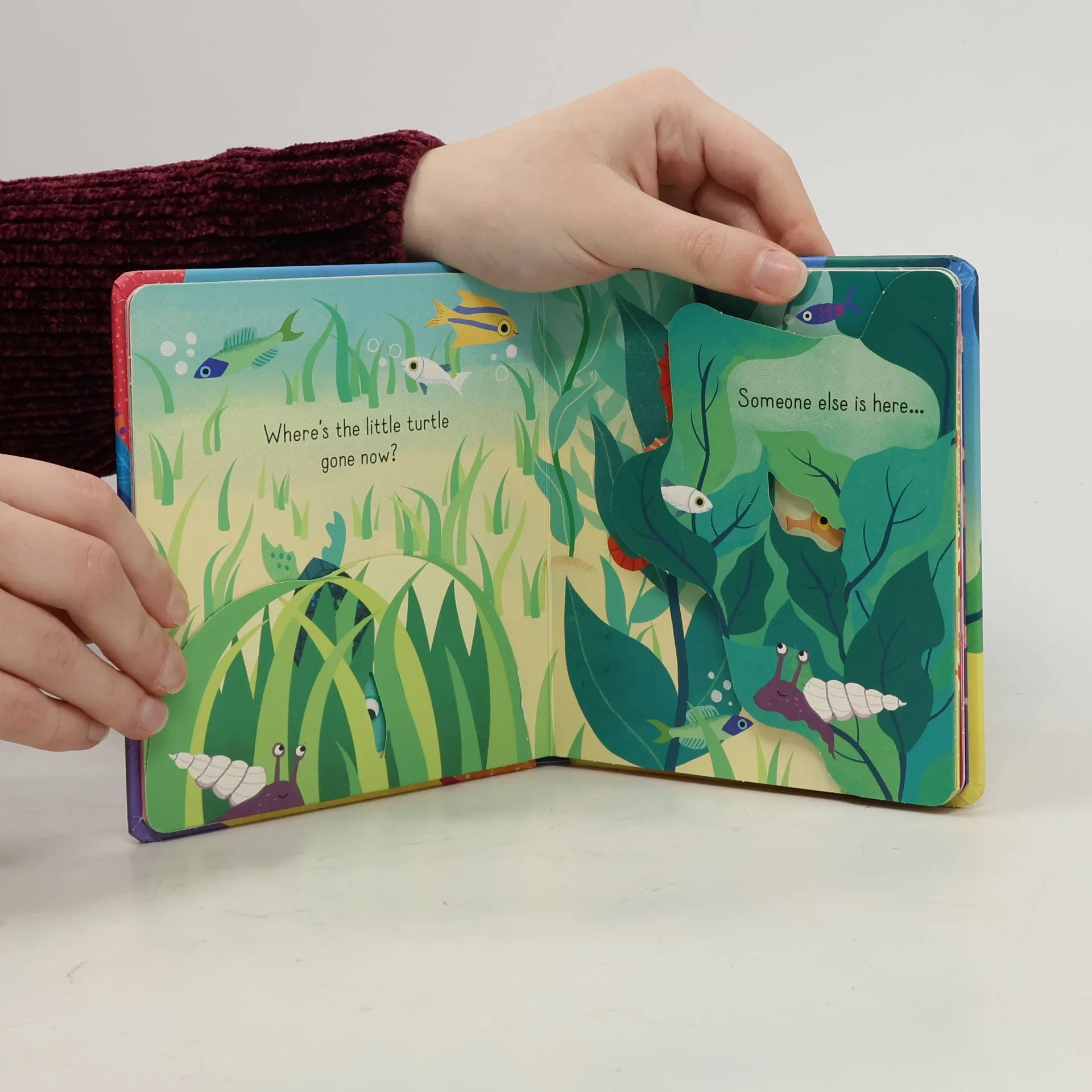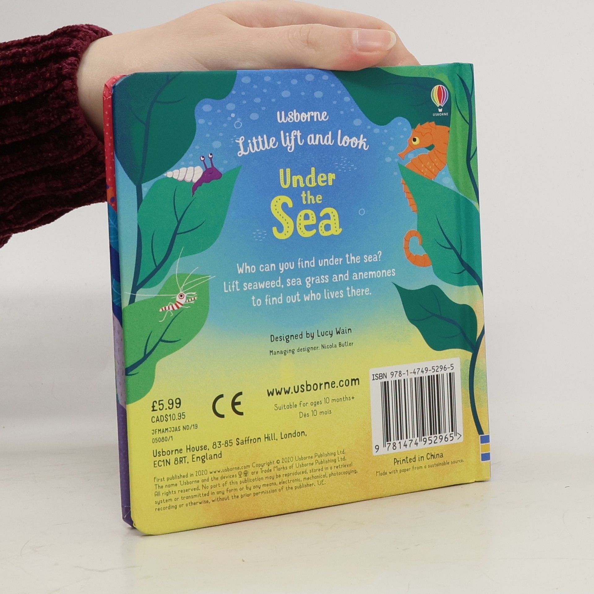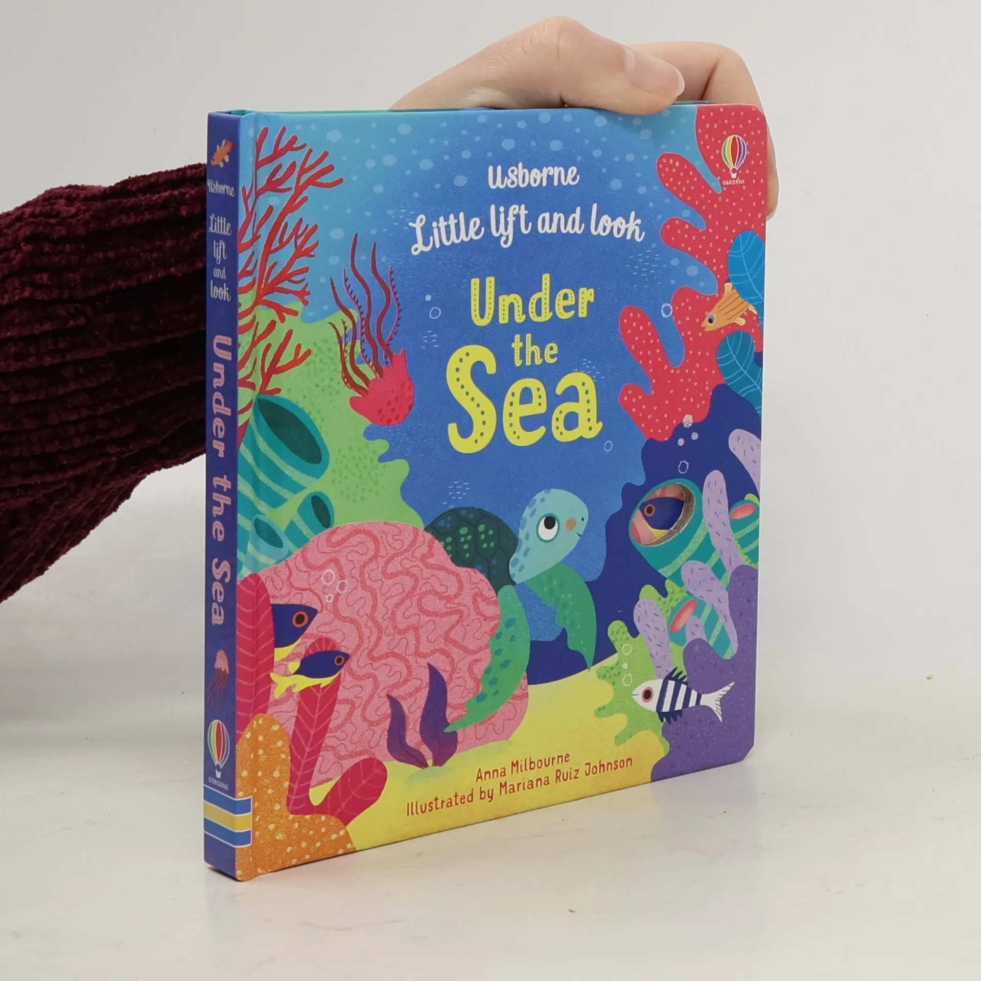 Adorable under the sea flap book for babies. Who can you find under the sea? Follow a little turtle through a coral reef and lift seaweed, sea grass and anemones to meet colourful seahorses, a clownfish and her family, a big octopus and lots more. With sturdy flaps for little hands, delightful text and charming illustrations by Mariana Ruiz Johnson.