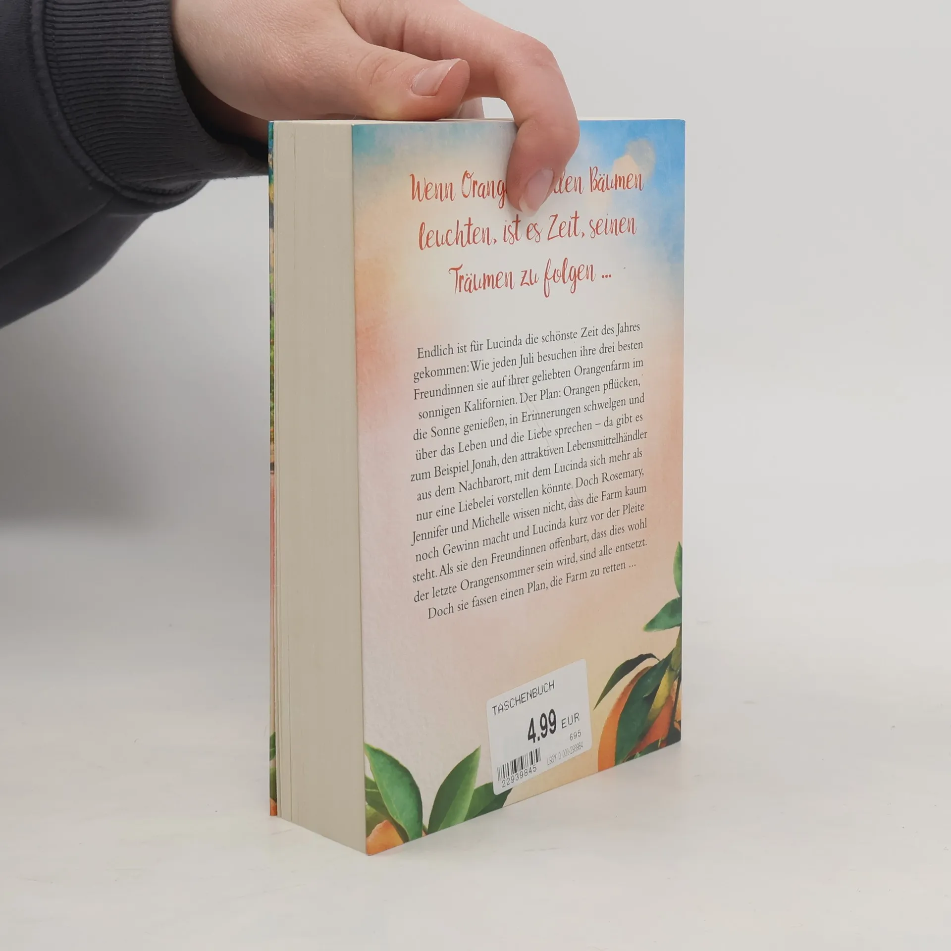 Wenn die Orangen in den Bäumen leuchten und die Sonne hoch am kalifornischen Himmel steht, ist es Zeit, sich zu verlieben ... Endlich ist für Lucinda die schönste Zeit des Jahres gekommen: Wie jeden Juli besuchen ihre drei besten Freundinnen sie auf ihrer geliebten Orangenfarm im sonnigen Kalifornien. Der Plan: Orangen pflücken, die Sonne genießen, in Erinnerungen schwelgen und über das Leben und die Liebe sprechen – da gibt es zum Beispiel Jonah, den attraktiven Lebensmittelhändler aus dem Nachbarort, mit dem Lucinda sich mehr als nur eine Liebelei vorstellen könnte. Doch Rosemary, Jennifer und Michelle wissen nicht, dass die Farm kaum noch Gewinn macht und Lucinda kurz vor der Pleite steht. Als sie den Freundinnen offenbart, dass dies wohl der letzte Orangensommer sein wird, sind alle entsetzt. Doch sie fassen einen Plan, die Farm zu retten ... Die zauberhafte »Kalifornische Träume«-Reihe bei Blanvalet: 1. Wintervanille 2. Orangenträume 3. Mandelglück 4. Erdbeerversprechen 5. Walnusswünsche 6. Blaubeerjahre Alle Bände können auch unabhängig gelesen werden.