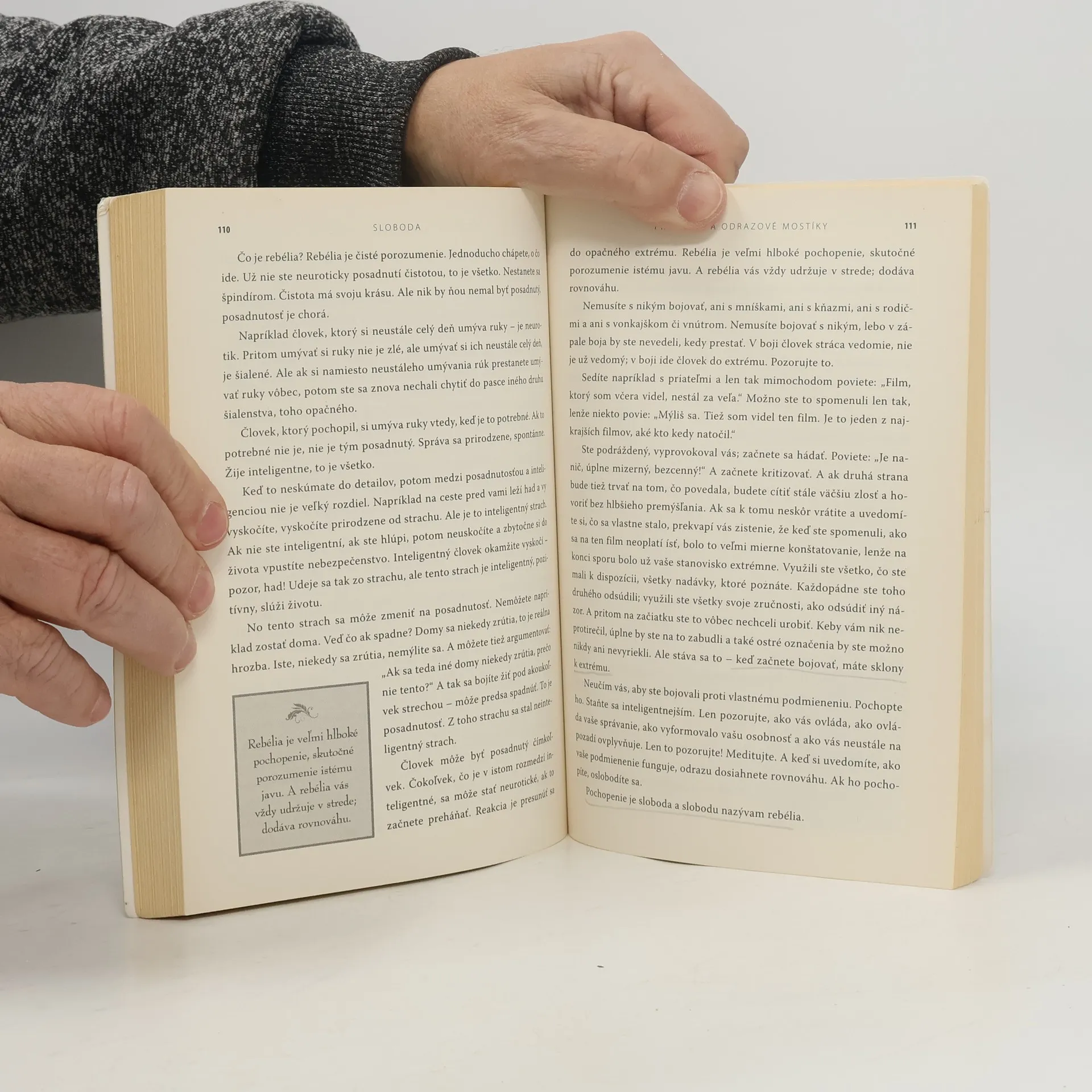 Sloboda má v Oshovom ponímaní tri štádiá. Prvé spočíva v oslobodení sa od psychlogického otroctva, ktoré na nás uvalili rodičia či spoločnosť. Spôsob, akým nás vychovávali, má za následok naše pretvorenie na otrokov – najčastejšie na otrokov spoločnosti, v ktorej sme vyrastali. Nasledujúcim štádiom je sloboda kvôli niečomu alebo pre niečo – chceme byť slobodní, aby sme niečo vytvorili, naplnili, uskutočnili, realizovali sa. A posledným štádiom je samotná sloboda, najvyššia a konečná, ktorá predstavuje viac než len oslobodenie sa od niečoho a pre niečo. Je to sloboda byť samým sebou a v každom okamihu žiť autenticky. Osho nám svojím originálnym pohľadom a nezameniteľným štýlom plným príkladov a humoru pomáha identifikovať prekážky, ktoré nám bránia cítiť sa slobodne a nabrať odvahu konať v súlade so svojím ja.