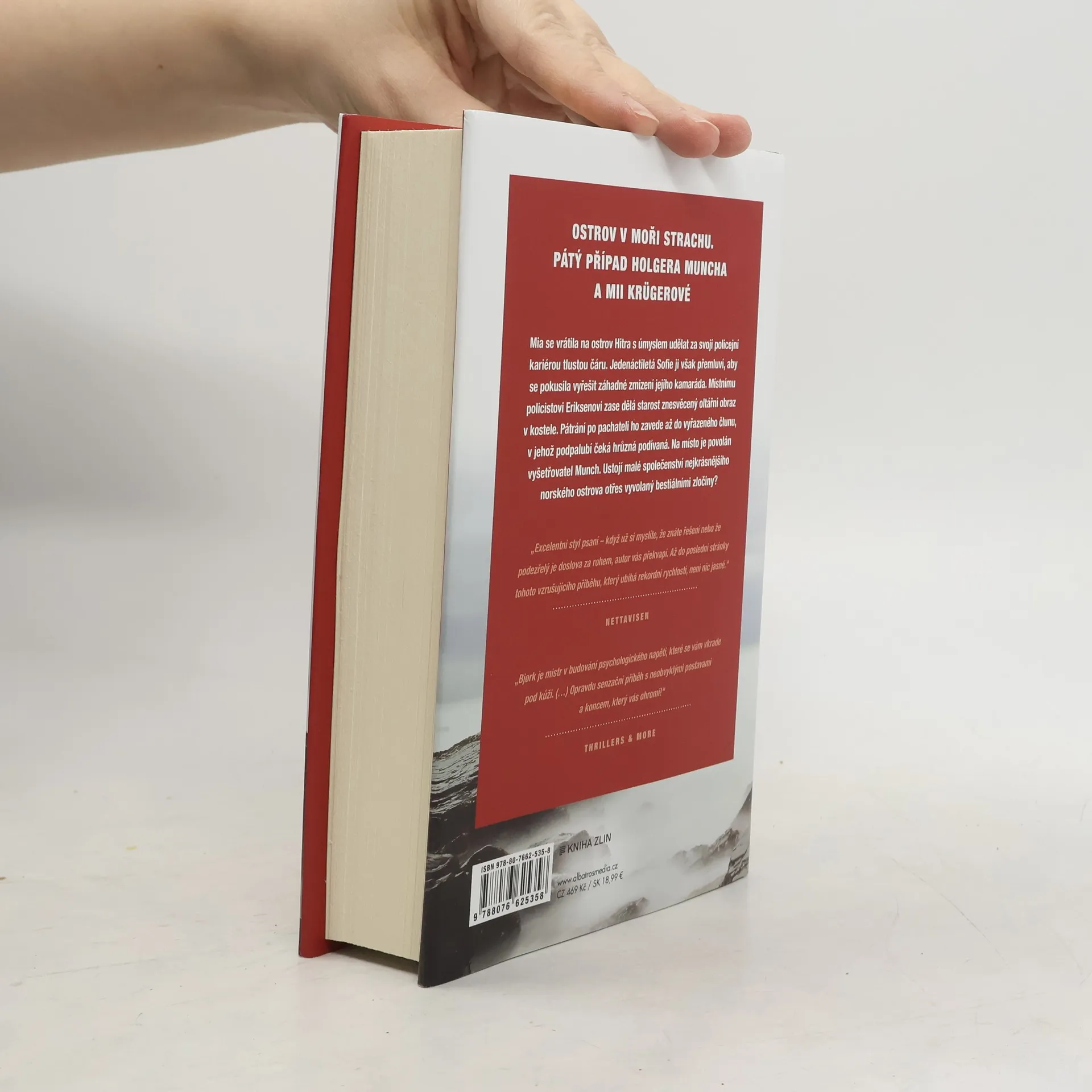Ostrov v moři strachu. Pátý případ Holgera Muncha a Mii Krügerové.Mia se vrátila na ostrov Hitra s úmyslem udělat za svojí policejní kariérou tlustou čáru. Jedenáctiletá Sofie ji však přemluví, aby se pokusila vyřešit záhadné zmizení jejího kamaráda. Místnímu policistovi Eriksenovi zase dělá starost znesvěcený oltářní obraz v kostele. Pátrání po pachateli ho zavede až do vyřazeného člunu, v jehož podpalubí čeká hrůzná podívaná. Na místo je povolán vyšetřovatel Munch. Ustojí malé společenství nejkrásnějšího norského ostrova otřes vyvolaný bestiálními zločiny?