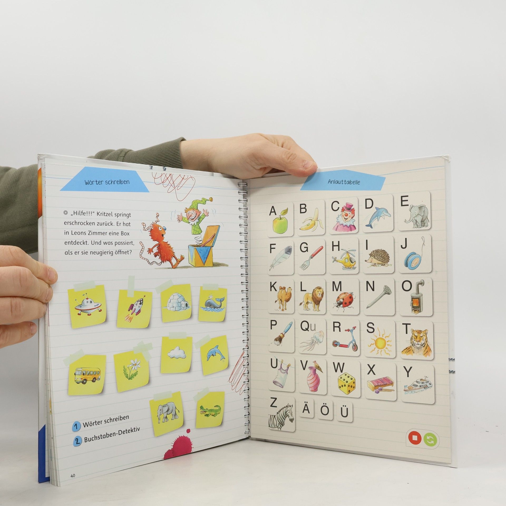 Noch nie hat Deutsch lernen so viel Spaß gemacht! Leon und Luisa erleben mit dem liebenswerten Monster Kritzel lustige Abenteuer auf dem Spielplatz oder auf Großmutters Dachboden. Dabei animiert Kritzel zum Lösen der über 50 Lernspiele und Aufgaben in immer neuen Varianten. Die Themen sind nach dem Lehrplan aufgebaut, können aber auch einzeln bearbeitet werden. Eingebettet in eine fröhliche Geschichte üben Kinder eigenständig die Lerninhalte der 1. Klasse. Dank tiptoi macht Lernen jetzt so richtig Spaß! Mit der Reihe tiptoi Lern mit mir! erleben die Kinder spielerisch, interaktiv und selbstständig verschiedene Lernthemen für die Grundschule. In den Bänden der Reihe können sie so Deutsch- und Mathematik-Inhalte für die 1. Klasse vertiefen, das kleine 1 x 1 üben oder Deutschland mit seinen Gebirgen, Städten und Sehenswürdigkeiten kennenlernen. Alle Inhalte werden kindgerecht und in Bezug auf die Lehrpläne der jeweiligen Fächer vermittelt. In jedem Buch gibt es viele knifflige und lustige Aufgaben in zahlreichen Varianten und mit motivierender Lösungskontrolle. Dies sorgt für wiederholte Beschäftigung und nachhaltigen Lernerfolg. Lustige Geräusche und spannende Geschichten runden das interaktive Erlebnis ab. Die Reihe ist somit die ideale Unterstützung zum Aneignen und selbständigen Vertiefen des Schulstoffs. tiptoi-Stift nicht enthalten. Muss separat erworben werden.