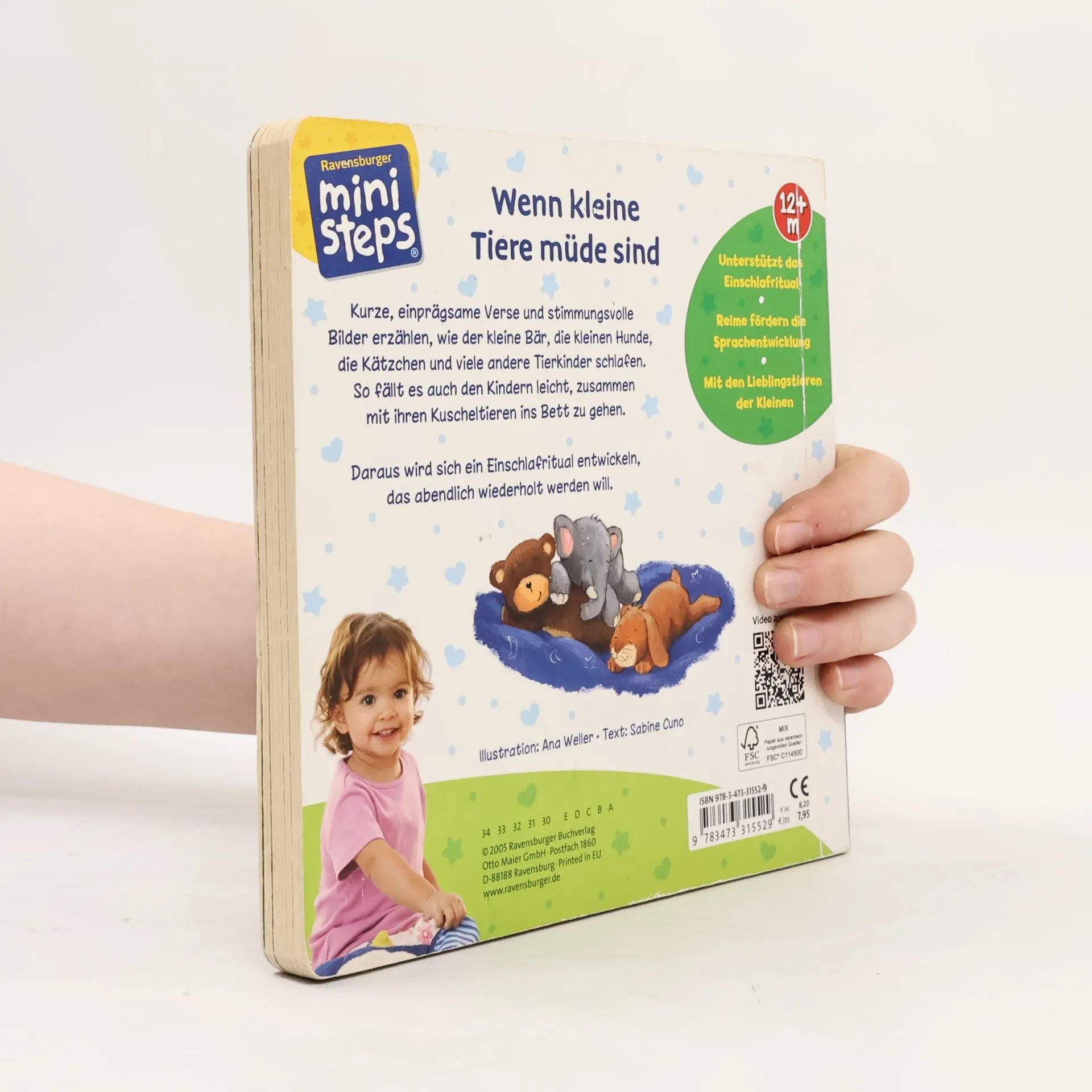Ein Lieblings-Gutenacht-Buch für die Kleinsten! Liebevolle Gute-Nacht-Szenen zeigen, wie der kleine Bär, die kleinen Hunde und viele andere Tierkinder schlafen gehen. Zweiundzwanzig stimmungsvolle Bilder begleiten die Geschichten. Kurze emotionale Reime animieren zum Mitsprechen und sind ein ideales Ritual für Kinder, sodass es ihnen leichtfällt, ins Bett zu gehen. Diese besondere Geschichte bietet ein wunderschönes Einschlafritual und sollte in keinem Kinderzimmer fehlen. Die Bären schlafen in ihrer Höhle, die Schnecke zieht sich in ihr Haus zurück, und die Hundekinder kuscheln sich aneinander. Wie schlafen Igelkinder, Löwenbabys und kleine Pinguine? Fast 20 verschiedene Tierkinder werden liebevoll zu Bett gebracht. Die stimmungsvollen Bilder zeigen die Tiere und ihre Kinder in ihrem natürlichen Zuhause und bieten viele Gesprächsanlässe für Eltern und Kind. Die Reime führen durch das Buch, bis auch das Kind mit seinen Kuscheltieren schlafen geht. So wird das Einschlafen kinderleicht. - Unterstützt das Einschlafritual - Reime fördern die Sprachentwicklung - Mit den Lieblingstieren der Kleinen Vertrauen schenken. ministeps begleitet Babys und Kleinkinder auf ihren ersten Schritten ins Leben. Die vielfältigen ministeps Produkte bieten optimale Sinnesanreize, fördern das Erkennen von Farben, Formen und Bildern und ermutigen zum Krabbeln und Sprechen. Alle Produkte sind von höchster Ravensburger Qualität.