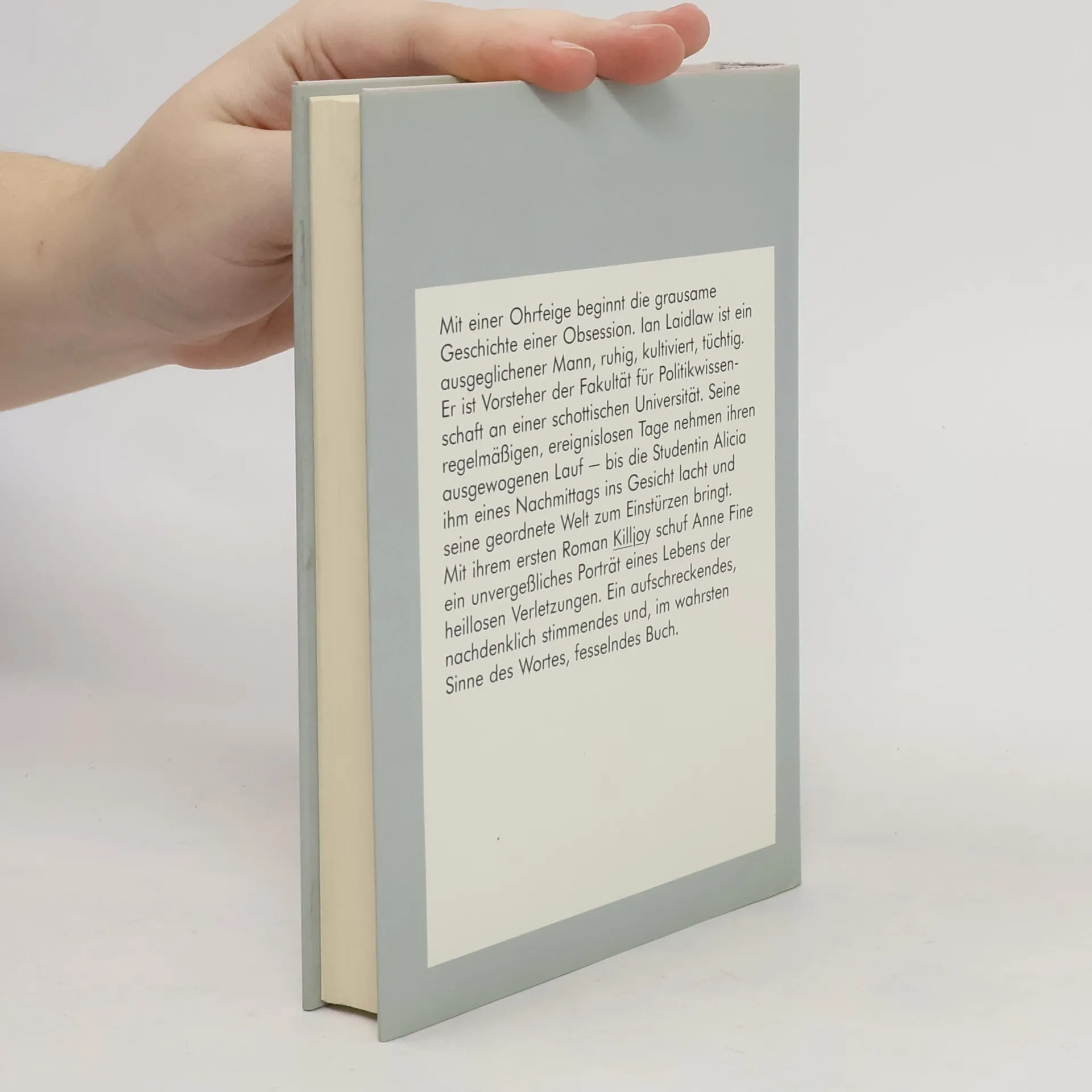 Mit einer Ohrfeige beginnt die grausame Geschichte einer Obsession. Ian Laidlaw ist ein ausgeglichener Mann, kultiviert, tüchtig. Er ist Vorsteher der Fakultät für Politikwissenschaft an einer schottischen Universität. Seine regelmäßigen, ereignislosen Tage nehmen ihren ausgewogenen Lauf - bis die Studentin Alicia ihm eines Nachmittags ins Gesicht lacht und seine geordnete Welt zum Einstürzen bringt.