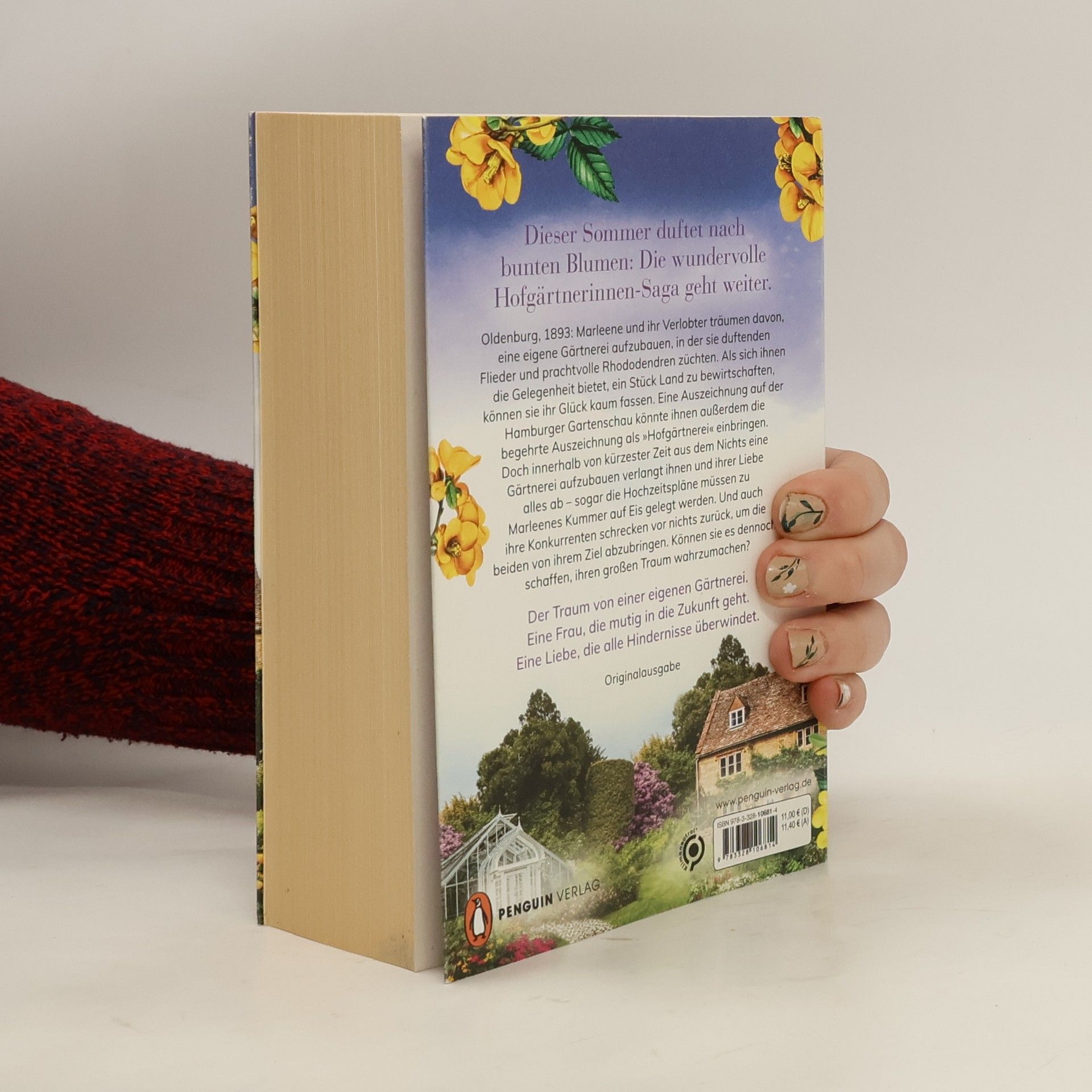 Der Traum einer eigenen Gärtnerei. Eine Frau, die mutig in die Zukunft geht. Eine Liebe, die alle Hindernisse überwindet. Oldenburg, 1893: Marleene und ihr Verlobter träumen davon, eine eigene Gärtnerei aufzubauen, in der sie duftenden Flieder und prachtvolle Rhododendren züchten. Als sich ihnen die Gelegenheit bietet, ein Stück Land zu bewirtschaften, können sie ihr Glück kaum fassen. Eine Auszeichnung auf der Hamburger Gartenschau könnte ihnen außerdem die begehrte Auszeichnung als »Hofgärtnerei« einbringen. Doch innerhalb von kürzester Zeit aus dem Nichts eine Gärtnerei aufzubauen verlangt ihnen und ihrer Liebe alles ab – sogar die Hochzeitspläne müssen zu Marleenes Kummer auf Eis gelegt werden. Und auch ihre Konkurrenten schrecken vor nichts zurück, um die beiden von ihrem Ziel abzubringen. Können sie es dennoch schaffen, ihren großen Traum wahrzumachen? Dieser Sommer duftet nach bunten Blumen. Die wundervolle Hofgärtnerinnen-Saga geht weiter. In hochwertig veredelter, liebevoller Ausstattung. »Ein sehr sinnliches Lesevergnügen.« freundin über ›Die Hofgärtnerin. Frühlingsträume‹ Alle Bände der Saga: Buch 1: »Die Hofgärtnerin – Frühlingsträume« (Neuerscheinung 2021) Buch 2: »Die Hofgärtnerin – Sommerleuchten« (Neuerscheinung 2022) Buch 3: »Die Hofgärtnerin – Blütenzauber« (Neuerscheinung 2023) Der Traum einer eigenen Gärtnerei. Eine Frau, die mutig in die Zukunft geht. Eine Liebe, die alle Hindernisse überwindet. Eine Kindheit voller Fliederduft: Da Rena Rosenthal in der Gärtnerei ihrer Eltern aufwuchs, wurde ihr die Liebe zu den Blumen in die Wiege gelegt Mit vielen Rezepturen für selbstgemachte Kosmetik zum Ausprobieren