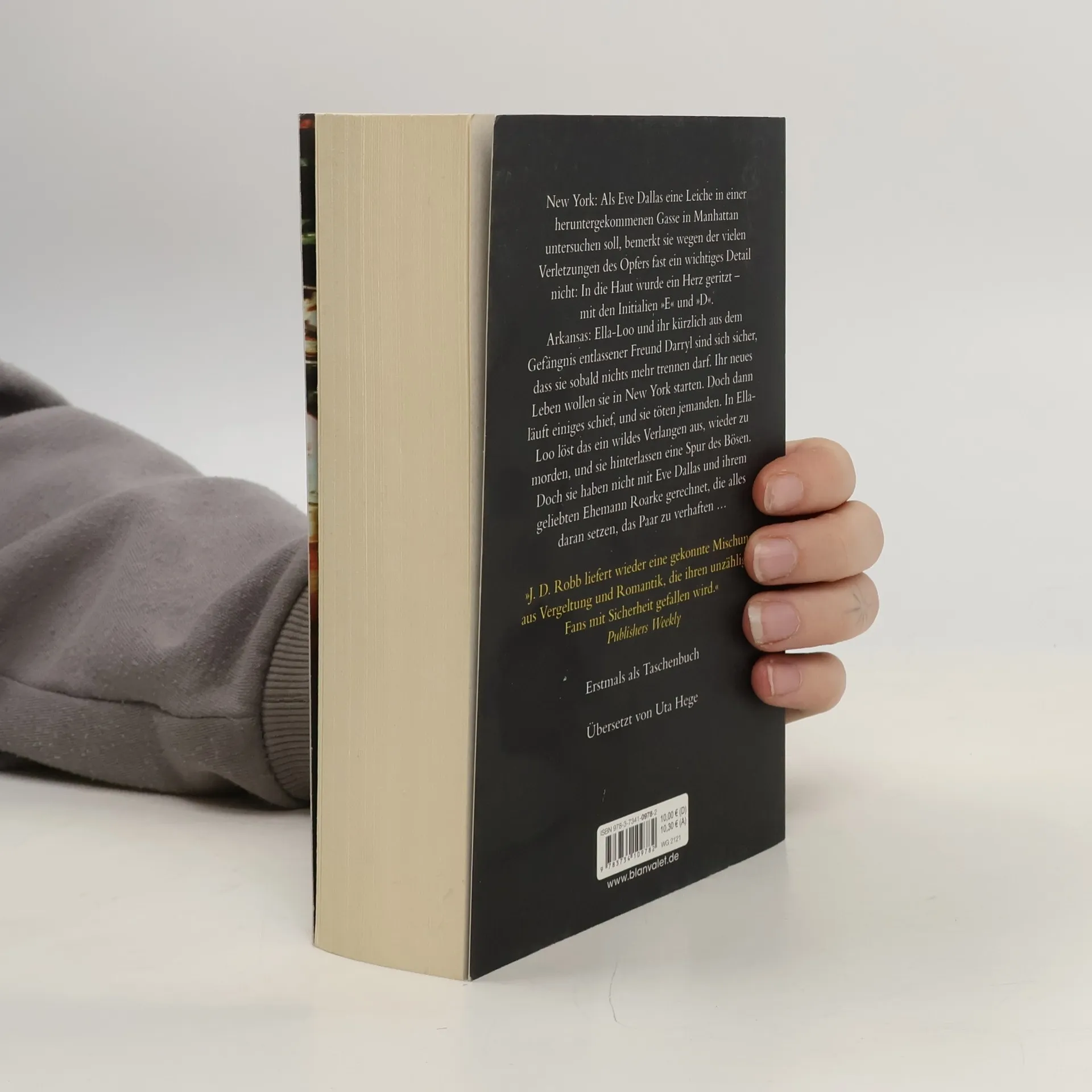 Ein mordlustiges Pärchen, das eine Spur des Bösen hinterlässt – und Eve Dallas wird nicht ruhen, bis die beiden hinter Gittern sind … New York: Als Eve Dallas eine Leiche in einer heruntergekommenen Gasse in Manhattan untersuchen soll, bemerkt sie wegen der vielen Verletzungen des Opfers fast ein wichtiges Detail nicht: In die Haut wurde ein Herz geritzt – mit den Initialien »E« und »D«. Arkansas: Ella-Loo und ihr kürzlich aus dem Gefängnis entlassener Freund Darryl sind sich sicher, dass sie sobald nichts mehr trennen darf. Ihr neues Leben wollen sie in New York starten. Doch dann läuft einiges schief, und sie töten jemanden. In Ella-Loo löst das ein wildes Verlangen aus, wieder zu morden, und sie hinterlassen eine Spur des Bösen. Doch sie haben nicht mit Eve Dallas und ihrem geliebten Ehemann Roarke gerechnet, die alles daran setzen, das Paar zu verhaften … 20 Jahre, 41 Romane und eine riesige Fangemeinde – Nora Roberts als J. D. Robb ist einfach unschlagbar!