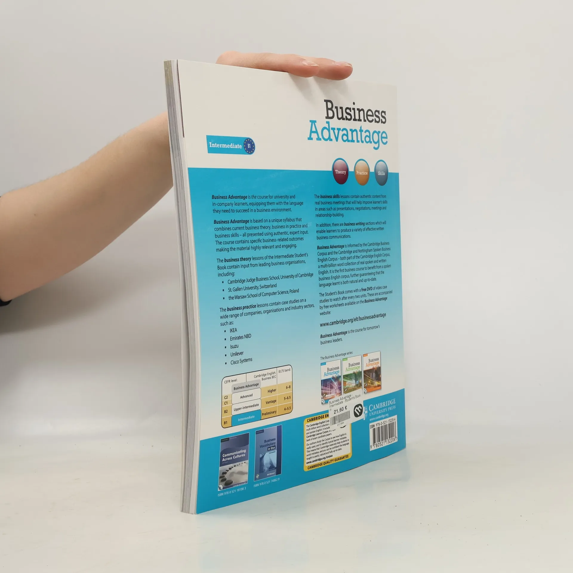 An innovative, new multi-level course for the university and in-company sector. Business Advantage is the course for tomorrow's business leaders. Based on a unique syllabus that combines current business theory, business in practice and business skills - all presented using authentic, expert input - the course contains specific business-related outcomes that make the material highly relevant and engaging. The Business Advantage Intermediate level books include input from the following leading institutions and organisations: the Cambridge Judge Business School, IKEA, Emirates NBD, Isuzu and Unilever - to name but a few.
