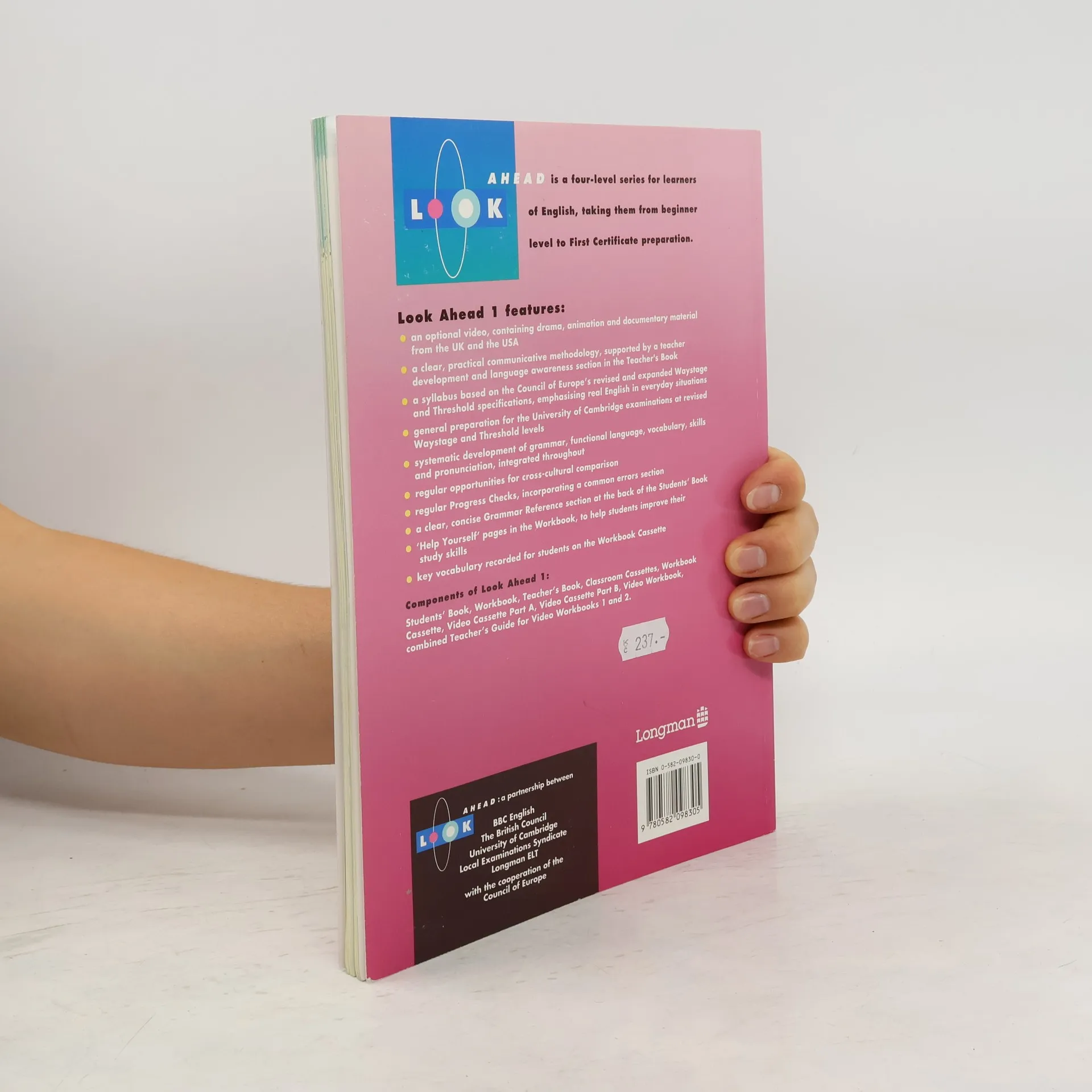 Look Ahead is a four-level series for upper secondary and young adult learners of English, taking them from beginning level to First Certificate preparation. The Longman classroom series is the institutional version of this multimedia project, created by a consortium consisting of: BBC English, British Council, Longman ELT, Cambridge Examinations (UCLES), with the cooperation of the Council of Europe.