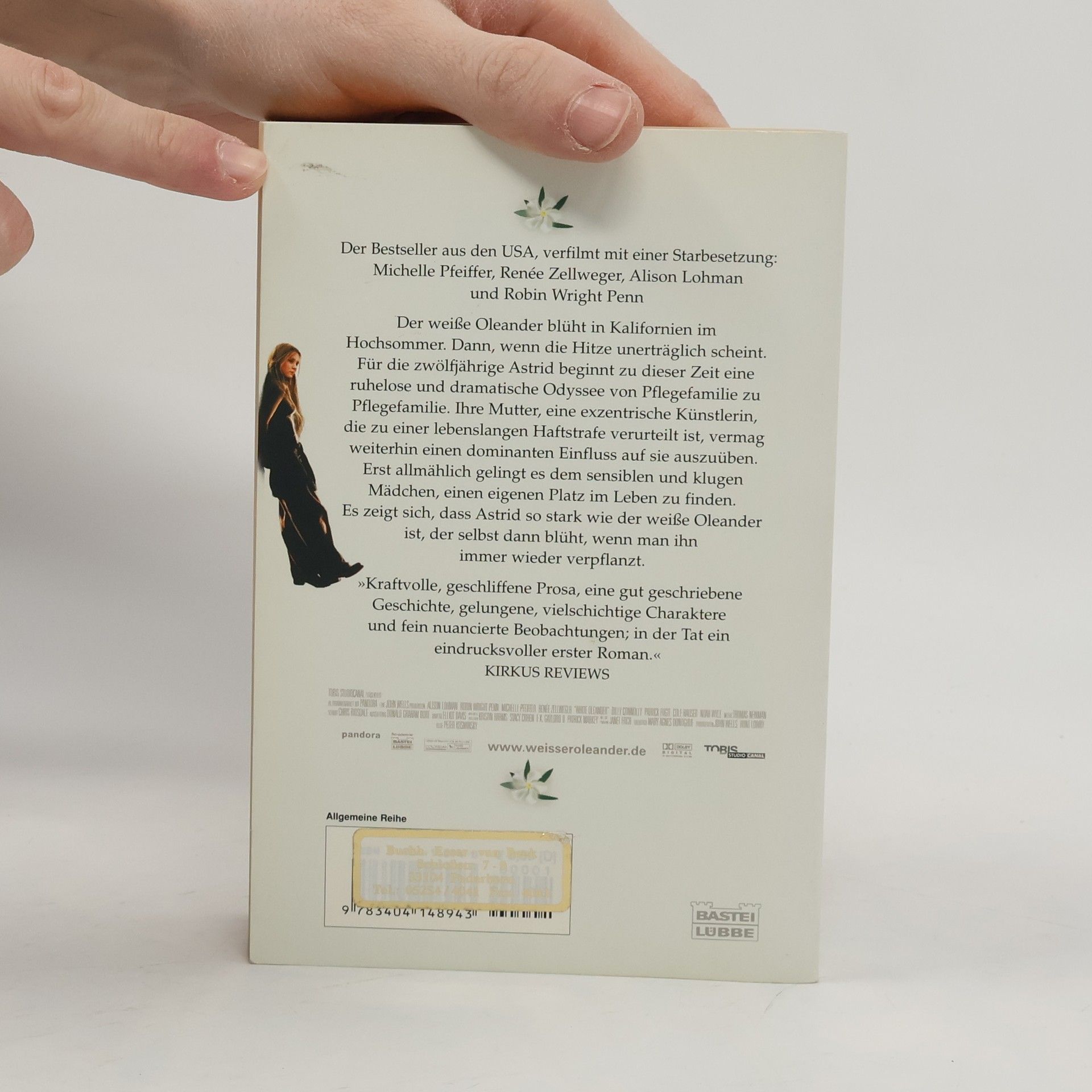 Der weiße Oleander blüht in Kalifornien im Hochsommer. Dann, wenn die Hitze unerträglich erscheint. Für die zwölfjährige Astrid beginnt zu dieser Zeit eine ruhelose und dramatische Odyssee von Pflegefamilie zu Pflegefamilie. Ihre Mutter, eine exzentrische Schriftstellerin, die zu einer lebenslangen Haftstrafe verurteilt ist, vermag weiterhin einen dominanten Einfluss auf sie auszuüben. Erst allmählich gelingt es dem sensiblen und klugen Mädchen, einen eigenen Platz im Leben zu finden. Es zeigt sich, dass Astrid so stark wie der weiße Oleander ist, der selbst dann blüht, wenn man ihn immer wieder verpflanzt.