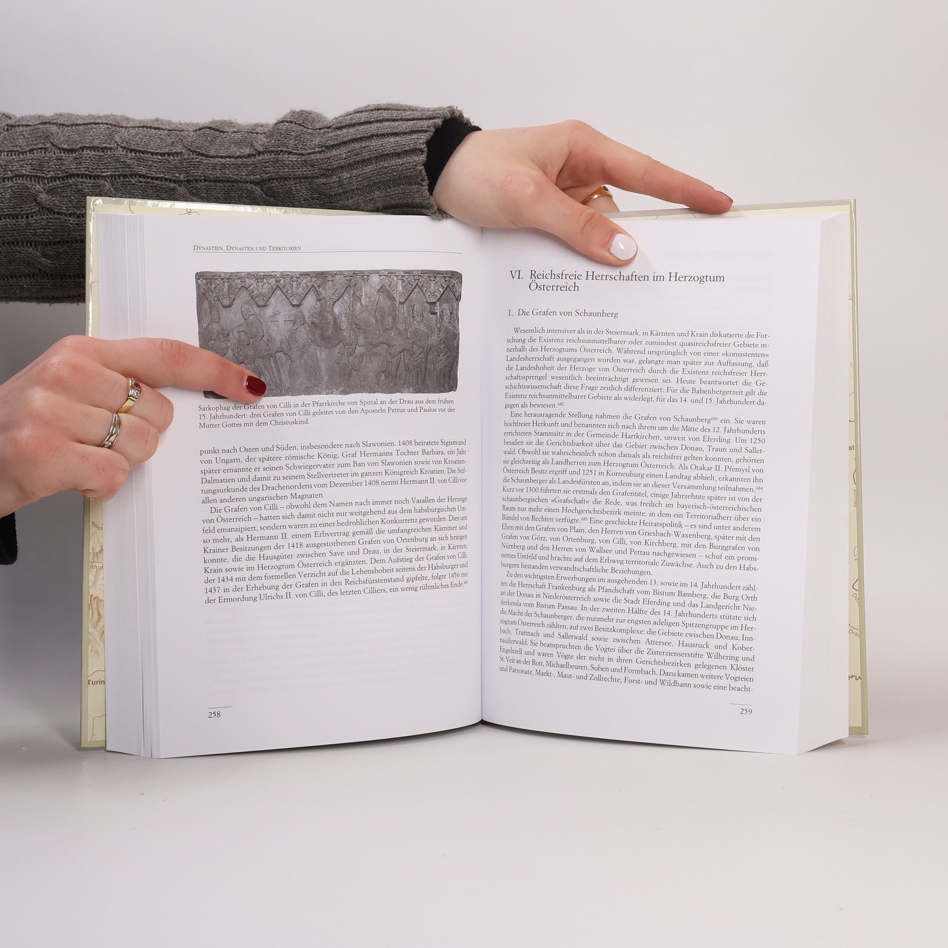 Im 13. Jahrhundert formen die Habsburger, die nach dem Untergang König Premysl Otakars II. die Herrschaft in Österreich und der Steiermark als Landfremde angetreten haben, durch den Erwerb der Länder Kärnten, Krain, Tirol sowie von Herrschaften in Vorarlberg eine Ländergruppe, die allen politischen Umwälzungen der folgenden Jahrhunderte zum Trotz im wesentlichen Bestand haben sollte. Auf die Bevölkerung wirkten sich die wechselnden politischen Zustände, Rivalitäten und Auseinandersetzungen innerhalb der Dynastie indes als ständige Bedrohung aus. Dazu kommt das „Große Sterben“, die Pestepidemie von 1348/49, die auch in den Alpen- und Donauländern unzählige Opfer fordert und ein Klima tiefer Verunsicherung schafft. Unter den Fürsten ragen bedeutende Persönlichkeiten hervor: Der energische Albrecht I. sichert die Habsburgerherrschaft in Österreich und der Steiermark. Der politisch weitsichtige Albrecht II. legt das ideelle und wirtschaftliche Fundament für die hochfliegenden Pläne seines Sohnes Rudolf IV., der für sein Haus den quasiköniglichen Rang eines Erzherzogs beansprucht und die Universität Wien gründet. Die großen künstlerischen, kulturellen und wirtschaftlichen Leistungen der Zeit machen das von der Gotik geprägte österreichische Spätmittelalter zu einer besonders farbenreichen und folgenschweren Epoche.