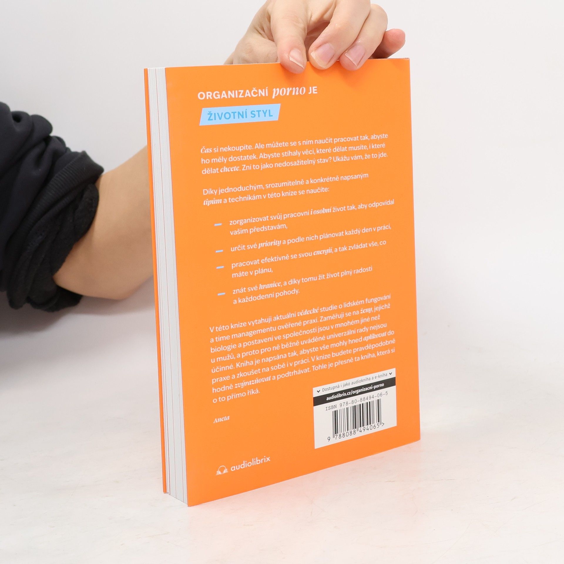 Organizační porno je životní styl. Čas si nekoupíte. Ale můžete se s ním naučit pracovat tak, abyste ho měly dostatek. Abyste stíhaly věci, které dělat musíte, i které dělat chcete. Zní to jako nedosažitelný stav? Ukážu vám, že to jde. Díky jednoduchým, srozumitelně a konkrétně napsaným tipům a technikám v této knize se naučíte: • zorganizovat svůj pracovní i osobní život tak, aby odpovídal vašim představám, • určit své priority a podle nich plánovat každý den v práci, • pracovat efektivně se svou energií, a tak zvládat vše, co máte v plánu, • znát své hranice, a díky tomu žít život plný radosti a každodenní pohody. V této knize vytahuji aktuální vědecké studie o lidském fungování a time managementu ověřené praxí. Zaměřuji se při tom na ženy, jejichž biologie a postavení ve společnosti jsou v mnohém jiné než u mužů, a proto pro ně běžně uváděné univerzální rady nejsou účinné. Kniha je napsána tak, abyste vše mohly hned aplikovat do praxe a zkoušet na sobě i v práci. V knize budete pravděpodobně hodně zvýrazňovat a podtrhávat. Tohle je přesně ta kniha, která si o to přímo říká.
