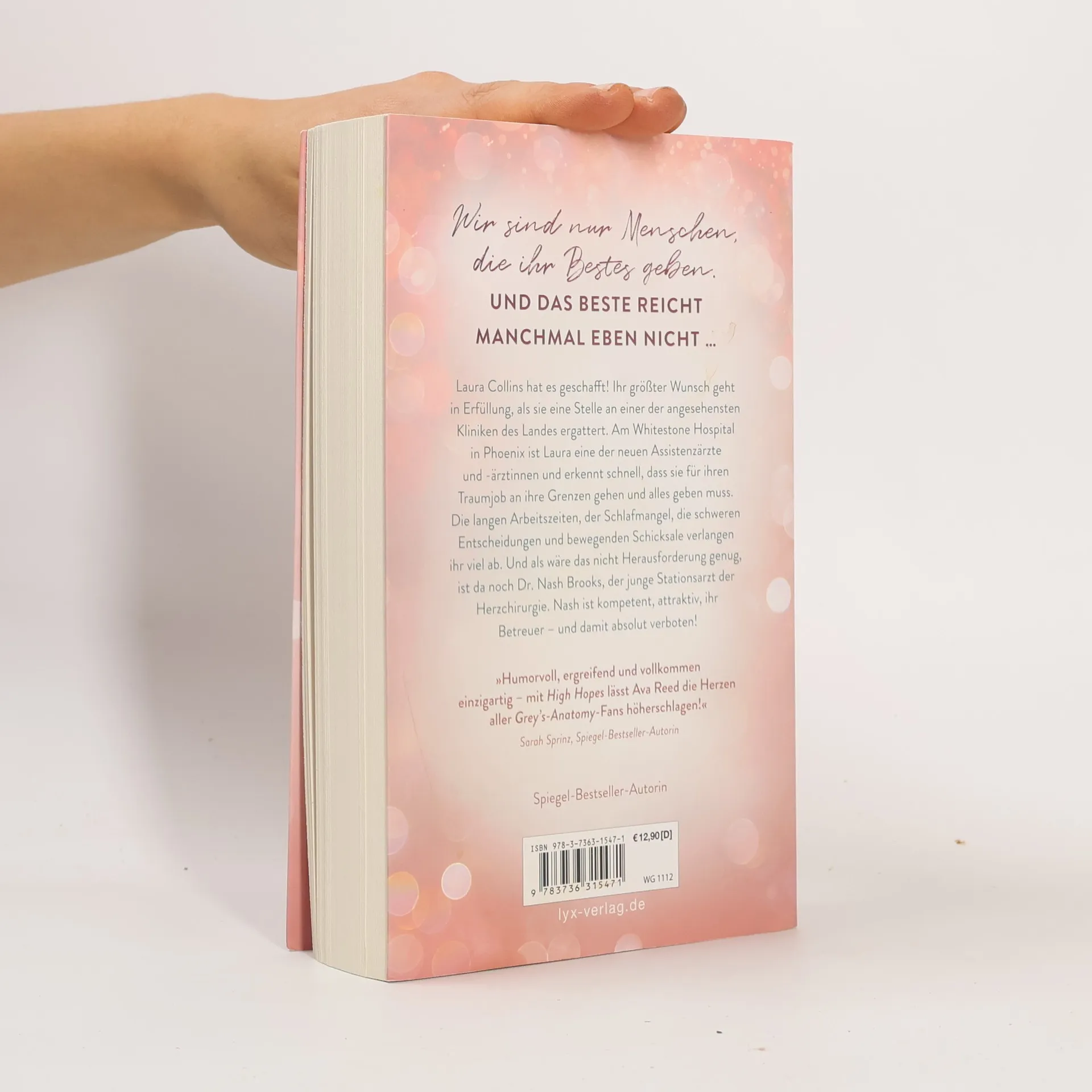 Wir sind nur Menschen, die ihr Bestes geben. Und das Beste reicht manchmal eben nicht ... Laura Collins hat es geschafft! Ihr größter Wunsch geht in Erfüllung, als sie eine Stelle an einer der angesehensten Kliniken des Landes ergattert. Am Whitestone Hospital in Phoenix ist Laura eine der neuen Assistenzärzte und -ärztinnen und erkennt schnell, dass sie für ihren Traumjob an ihre Grenzen gehen und alles geben muss. Die langen Arbeitszeiten, der Schlafmangel, die schweren Entscheidungen und bewegenden Schicksale verlangen ihr viel ab. Und als wäre das nicht Herausforderung genug, ist da noch Dr. Nash Brooks, der junge Stationsarzt der Herzchirurgie. Nash ist kompetent, attraktiv, ihr Betreuer - und damit absolut verboten! „Humorvoll, ergreifend und vollkommen einzigartig - mit HIGH HOPES lässt Ava Reed die Herzen aller GREY‘S-ANATOMY-Fans höherschlagen!“ SARAH SPRINZ, SPIEGEL-Bestseller-Autorin Auftakt der vierbändigen Serie rund um die jungen Ärzt: innen des WHITESTONE HOSPITALS von SPIEGEL-Bestseller-Autorin Ava Reed