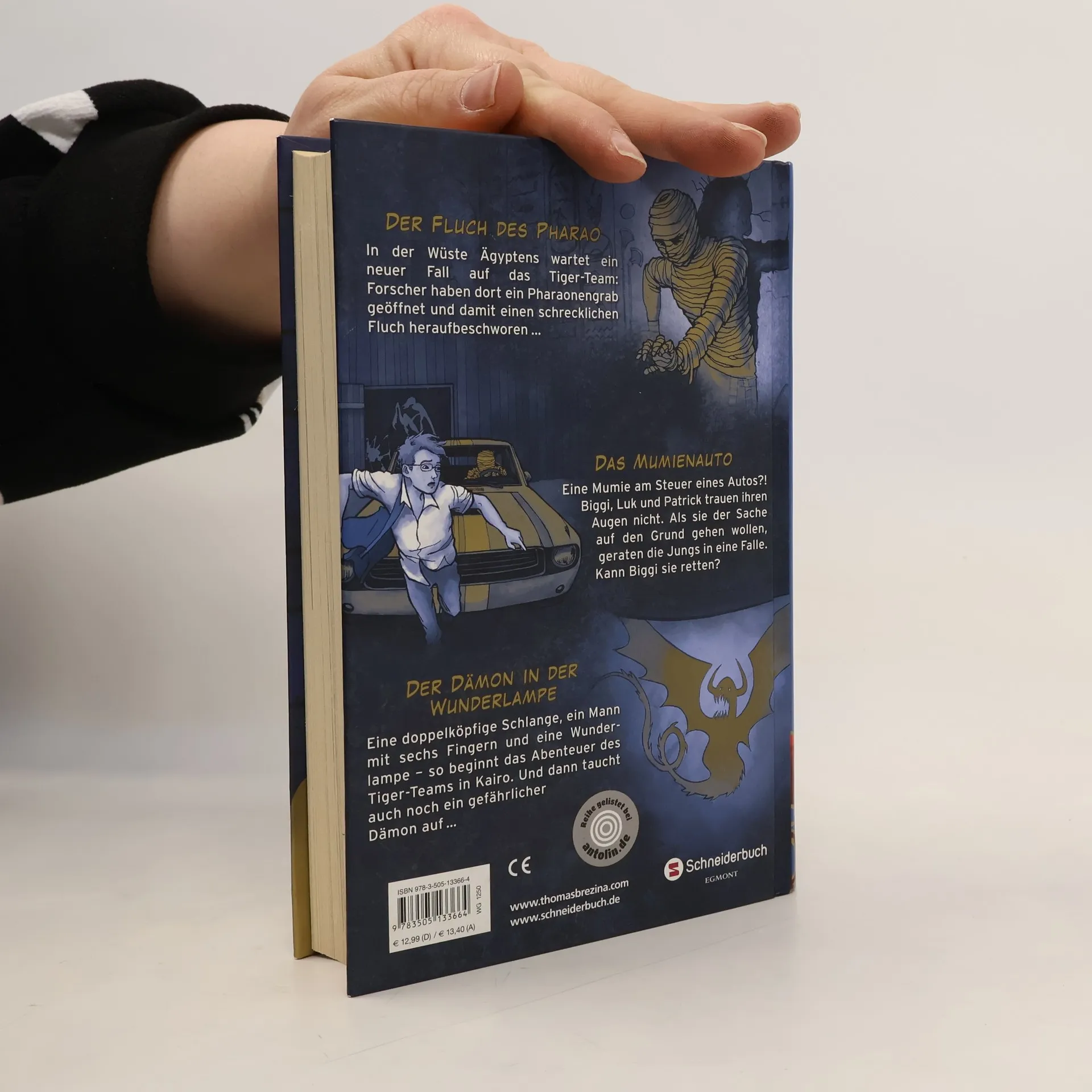 Eine Mumie am Steuer eines Autos? Biggi, Luk und Patrick trauen ihren Augen nicht, als sie die unheimliche Gestalt sehen! Doch das ist nicht der einzige Schrecken für die drei Detektive: Als Forscher ein Pharaonengrab öffnen, ziehen sie den Zorn des uralten Grabwächters auf sich, und auch sonst warten in Ägypten allerlei Abenteuer, die das Tiger-Team in eine Vergangenheit voller Geheimnisse führen … Dieser Sammelband enthält die Einzelbände: Der Fluch des Pharao (Band 6) Das Mumienauto (Band 14) Der Dämon in der Wunderlampe (Band 43)