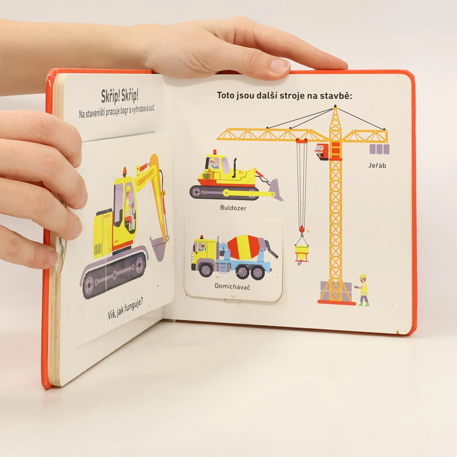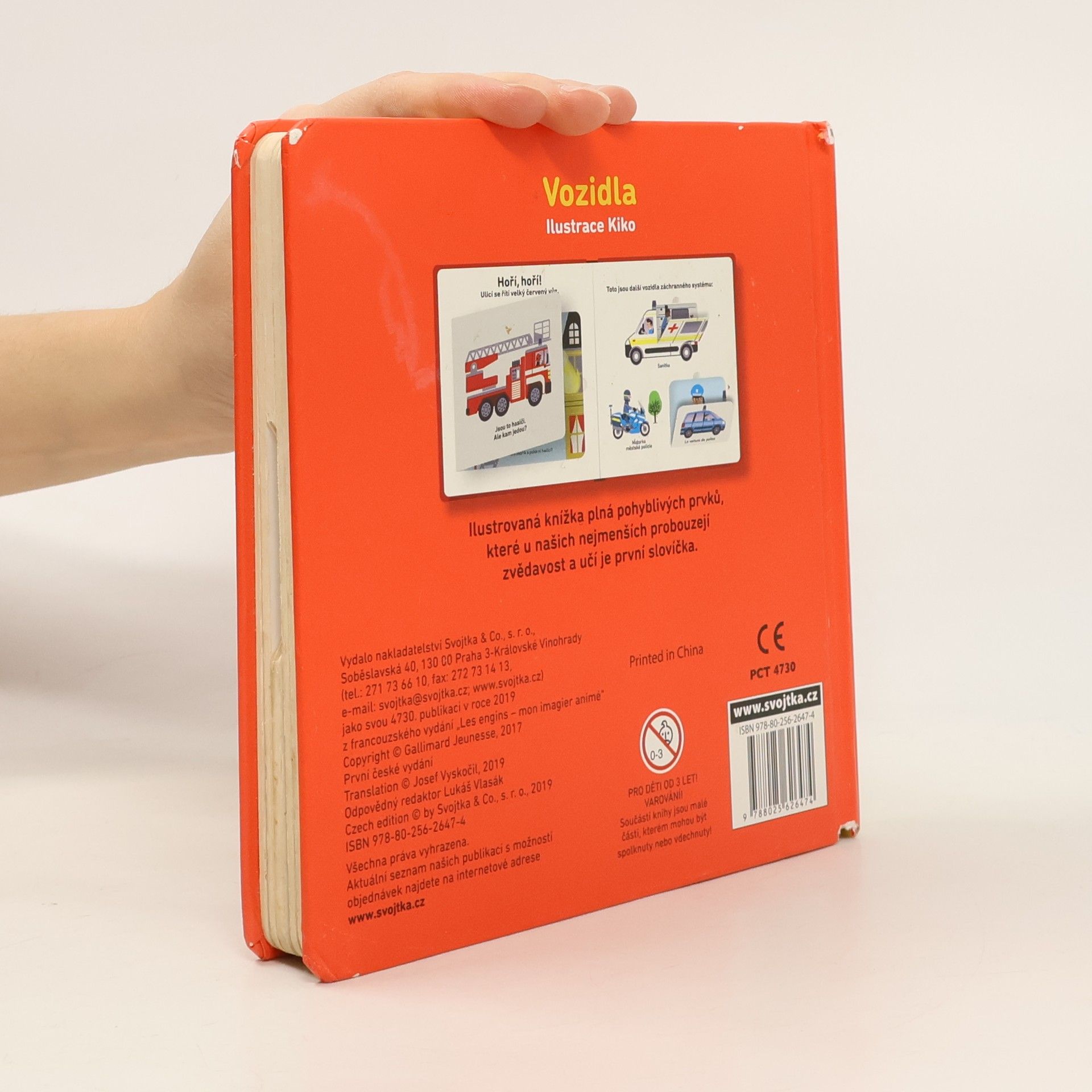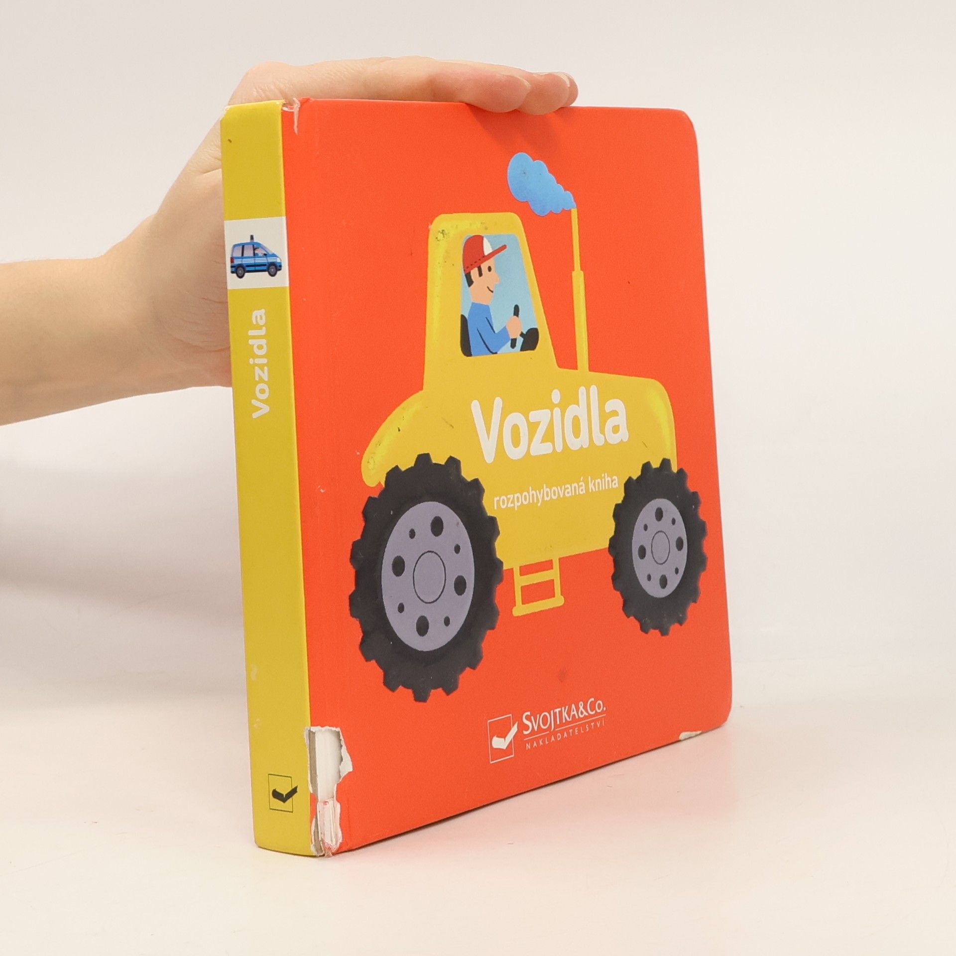 Dopravní prostředky děti uchvacují od prvních chvil, co nějaké takové veliké a hlasité auto na ulici spatří. A co teprve, když bliká a houká! V této pěkně a vkusně ilustrované knížce se malí čtenáři seznámí s různými vozidly. Záchranáři, jako hasiči a sanitky, pomáhají lidem v nouzi. Těžké stavební stroje zase pracují na staveništi. Poznají vaše děti, jaký je rozdíl mezi bagrem a traktorem? Díky pohyblivým prvkům v této knížce můžou obrázky oživit, a lépe si tak představit, co který dopravní prostředek dovede. Popisky k obrázkům děti zaujmou a vtáhnou je do čtení. Kniha rozvíjí také jemnou motoriku.