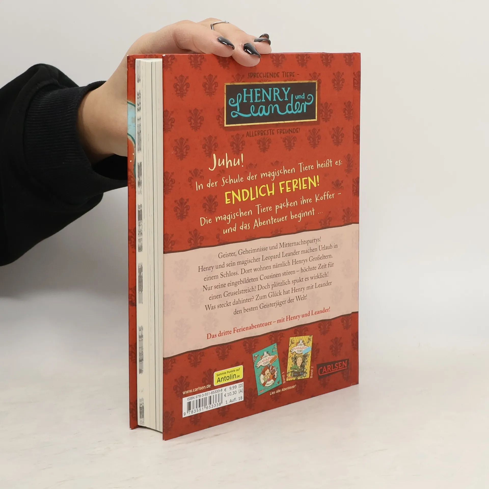 Jetzt kostenlos herunterladen – die App zur Serie! *** Auf in die Ferien – mit einem magischen, sprechenden Tier! *** BAND 3: Geister, Geheimnisse und Mitternachtspartys! Henry und sein magischer Leopard Leander machen Urlaub in einem echten Gespensterschloss. Dort wohnen nämlich Henrys Großeltern. Dumm nur, dass seine eingebildeten Cousinen auch da sind. Höchste Zeit für einen Gruselstreich! Doch plötzlich spukt es wirklich im Schloss. Zum Glück hat Henry mit seinem Leoparden Leander den besten Geisterjäger der Welt ... *** DIE SCHULE DER MAGISCHEN TIERE - Endlich Ferien: In der Schule der magischen Tiere heißt es: Endlich Ferien! Die magischen Tiere packen ihre Koffer – und das Abenteuer beginnt … Ein spannender Ferienkrimi in kurzen Kapiteln – mit echtem magischem Tier. *** Viel Spaß mit dem dritten Ferienabenteuer der Bestseller-Reihe! ***