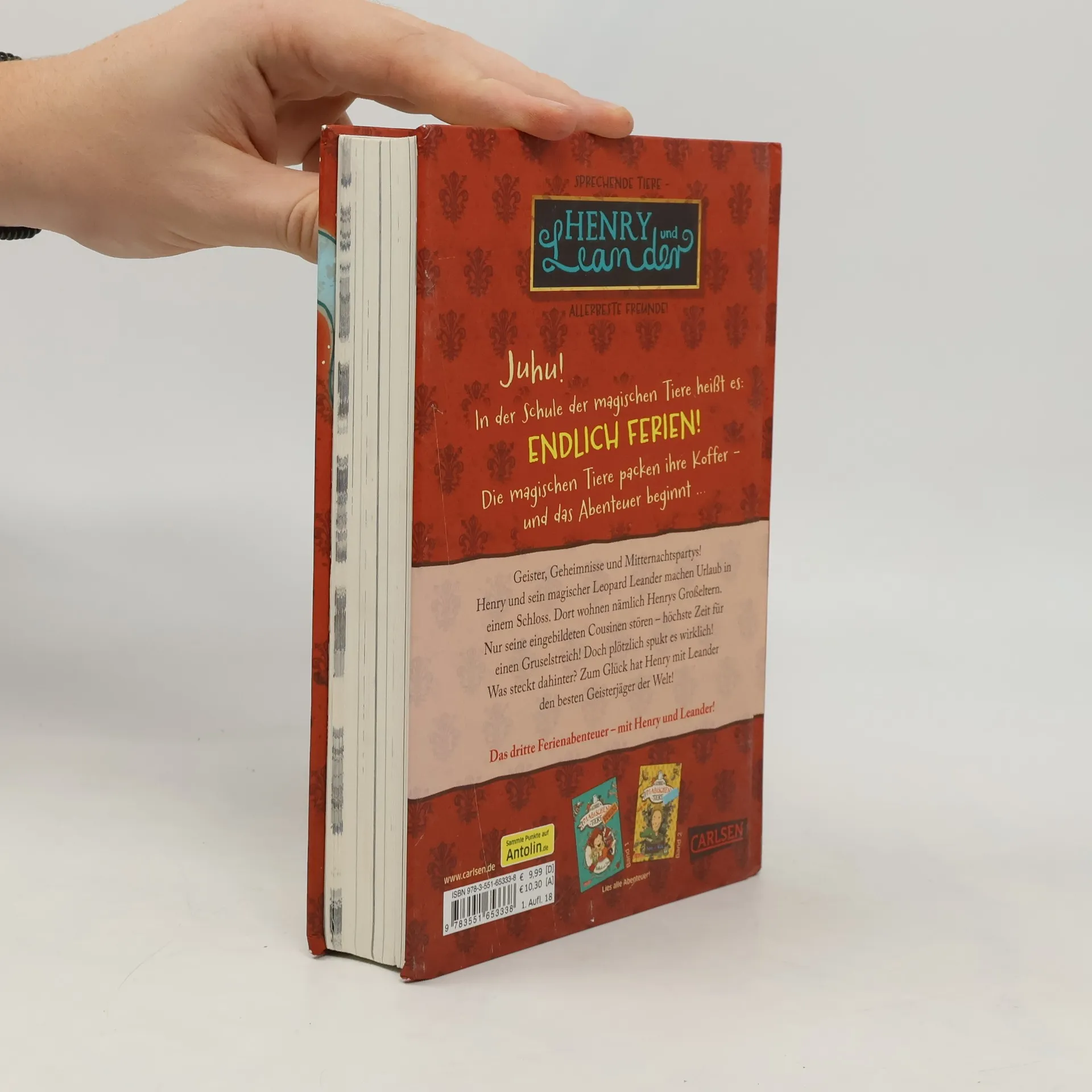 Jetzt kostenlos herunterladen – die App zur Serie! *** Auf in die Ferien – mit einem magischen, sprechenden Tier! *** BAND 3: Geister, Geheimnisse und Mitternachtspartys! Henry und sein magischer Leopard Leander machen Urlaub in einem echten Gespensterschloss. Dort wohnen nämlich Henrys Großeltern. Dumm nur, dass seine eingebildeten Cousinen auch da sind. Höchste Zeit für einen Gruselstreich! Doch plötzlich spukt es wirklich im Schloss. Zum Glück hat Henry mit seinem Leoparden Leander den besten Geisterjäger der Welt ... *** DIE SCHULE DER MAGISCHEN TIERE - Endlich Ferien: In der Schule der magischen Tiere heißt es: Endlich Ferien! Die magischen Tiere packen ihre Koffer – und das Abenteuer beginnt … Ein spannender Ferienkrimi in kurzen Kapiteln – mit echtem magischem Tier. *** Viel Spaß mit dem dritten Ferienabenteuer der Bestseller-Reihe! ***