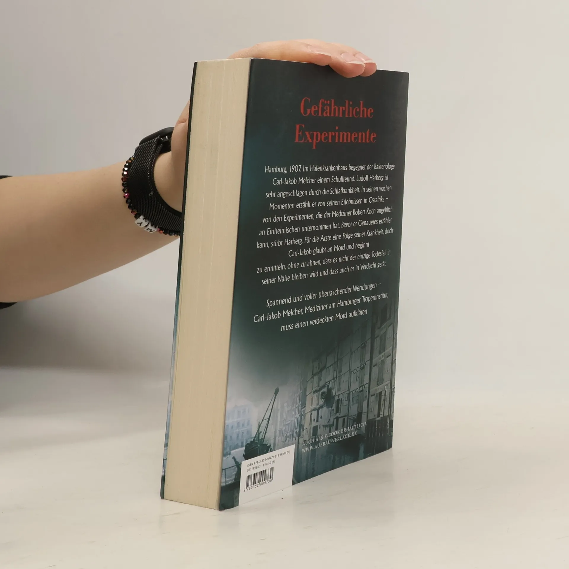 Gefährliche Experimente Hamburg, 1907. Im Hafenkrankenhaus begegnet der Bakteriologe Carl-Jakob Melcher einem Schulfreund. Ludolf Harberg ist sehr angeschlagen durch die Schlafkrankheit. In seinen wachen Momenten erzählt er von seinen Erlebnissen in Ostafrika – von den Experimenten, die der Mediziner Robert Koch angeblich an Einheimischen unternommen hat. Bevor er Genaueres erzählen kann, stirbt Harberg. Für die Ärzte eine Folge seiner Krankheit, doch Carl-Jakob glaubt an Mord und beginnt zu ermitteln, ohne zu ahnen, dass es nicht der einzige Todesfall in seiner Nähe bleiben wird und dass auch er in Verdacht gerät. Spannend und voller überraschender Wendungen – Carl-Jakob Melcher, Mediziner am Hamburger Tropeninstitut, muss einen verdeckten Mord aufklären