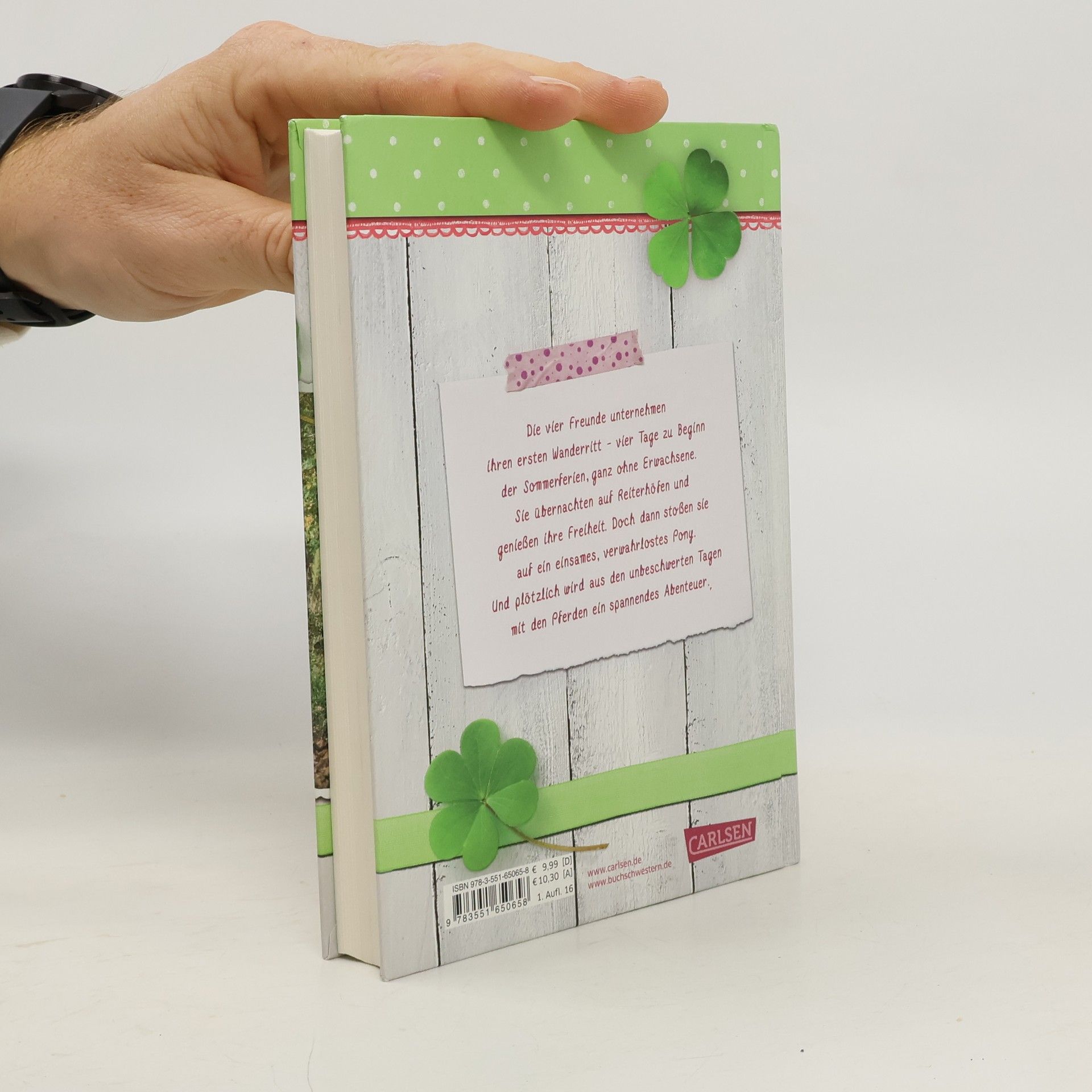 Die vier Freunde Emily, Benni, Marie und Luca unternehmen ihren ersten Wanderritt - vier Tage zu Beginn der Sommerferien, ganz ohne Erwachsene. Sie übernachten auf Reiterhöfen und genießen ihre Freiheit. Doch dann stoßen sie auf ein einsames, verwahrlostes Pony. Und plötzlich wird aus den unbeschwerten Tagen mit den Pferden ein spannendes Abenteuer.
