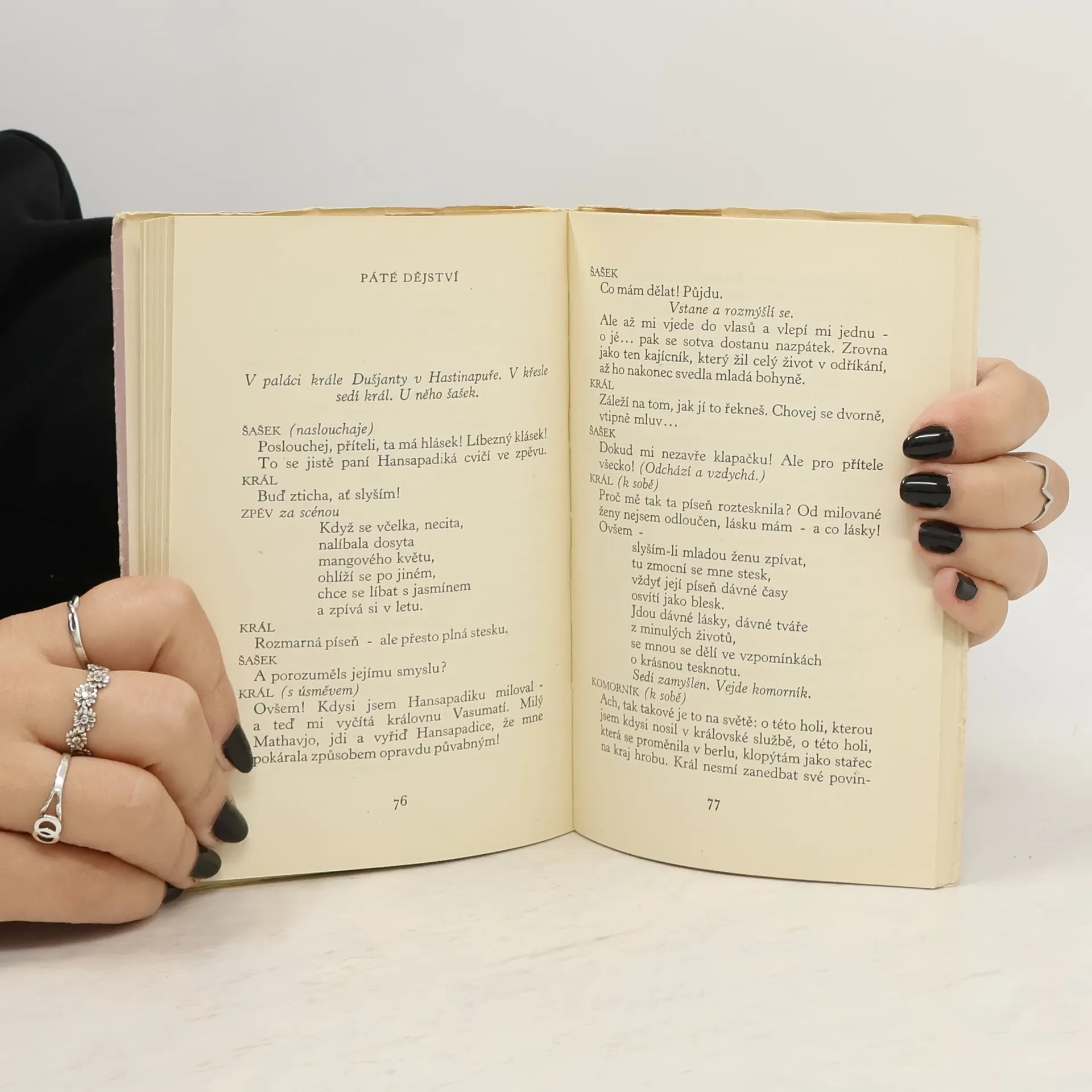 Šakuntala je nejen nejvýznamnějším dramatem Kálidásovým, ale je obecně uznávána jako nejlepší staroindické drama vůbec. Přitom má tato hra o milostném okouzlení všechny znaky starého indického dramatu. Především je v podstatě lyrická; její postavy vyslovují to, co prožívají, spíšnež aby jednaly nebo o něco usilovaly, i láska k nim přichází jako dar; dovedou vyjádřit i velmi jemně odstíněné city, přírodní dojmy, pocity úzkosti, lásky, starosti a radostného vyrovnání. Hrdinové hry jsou postavy z indické mytologie; Kálidása – jako většina ostatních indických dramatiků – se nesnaží o to, aby jeho hra byla obrazem konfliktů a složitosti života v jeho době, ale na osnově dávno známých událostí prohlubuje a zbásňuje své lyrické představy. Konečné vyrovnání není tragické ani nemá katarzi, rozkvete ve hře nenadále jako sen, skoro jako neuvěřitelný sen, a také trápení a úzkosti, které mu předcházejí, připomínají nevysvětlitelnost zlého snu. V základě Šakuntaly je lyrický údiv a překvapení, na jejichž hře nenesou hrdinové vinu ani zásluhu. Jak se Františku Hrubínovi, který knihu adaptoval, podařilo přebásnit poezii Kálidásových myšlenek, o tom svědčí kniha sama.