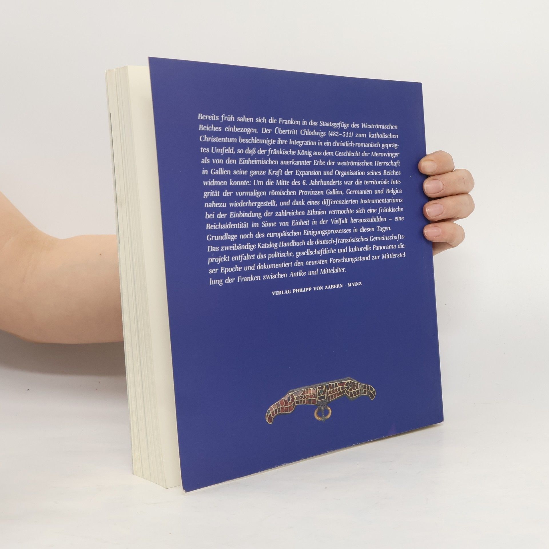 Dieses zweibändige Katalog-Handbuch entstand als deutsch-französisches Gemeinschaftsprojekt. Es hat die Entstehungs- und Blütezeit des Frankenreichs unter den Merowingern zum Thema und begleitet eine Ausstellung mit erlesenen Exponaten, die in Mannheim, später auch in Paris und Berlin gezeigt wird.