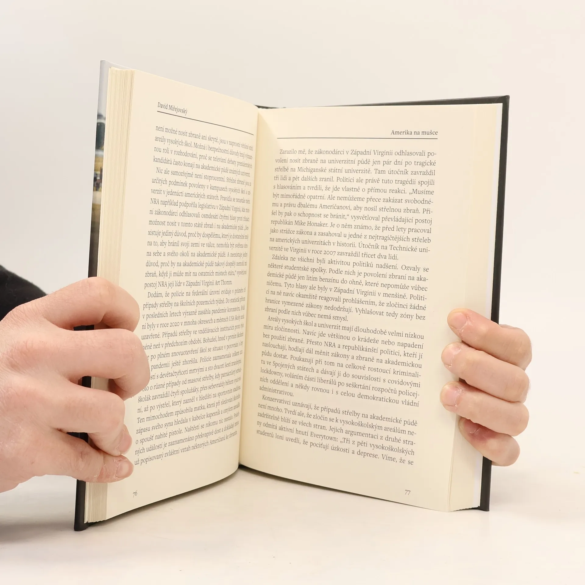 David Miřejovský se během svého působení v Americe věnoval řadě zásadních témat – od prezidentských voleb Biden vs. Trump přes covidovou pandemii až po vzestup hnutí BLM. Pokrýval ale také řádění šílených střelců, která pravidelně otřásají americkou veřejností. Na pozadí zážitků z natáčení i ze života v Americe nyní osvětluje, proč část Američanů nedá na zbraně dopustit a proč je část z duše nenávidí. Poznejte americkou realitu očima žurnalisty, který se dostane i do míst, kam běžný turista nezavítá!