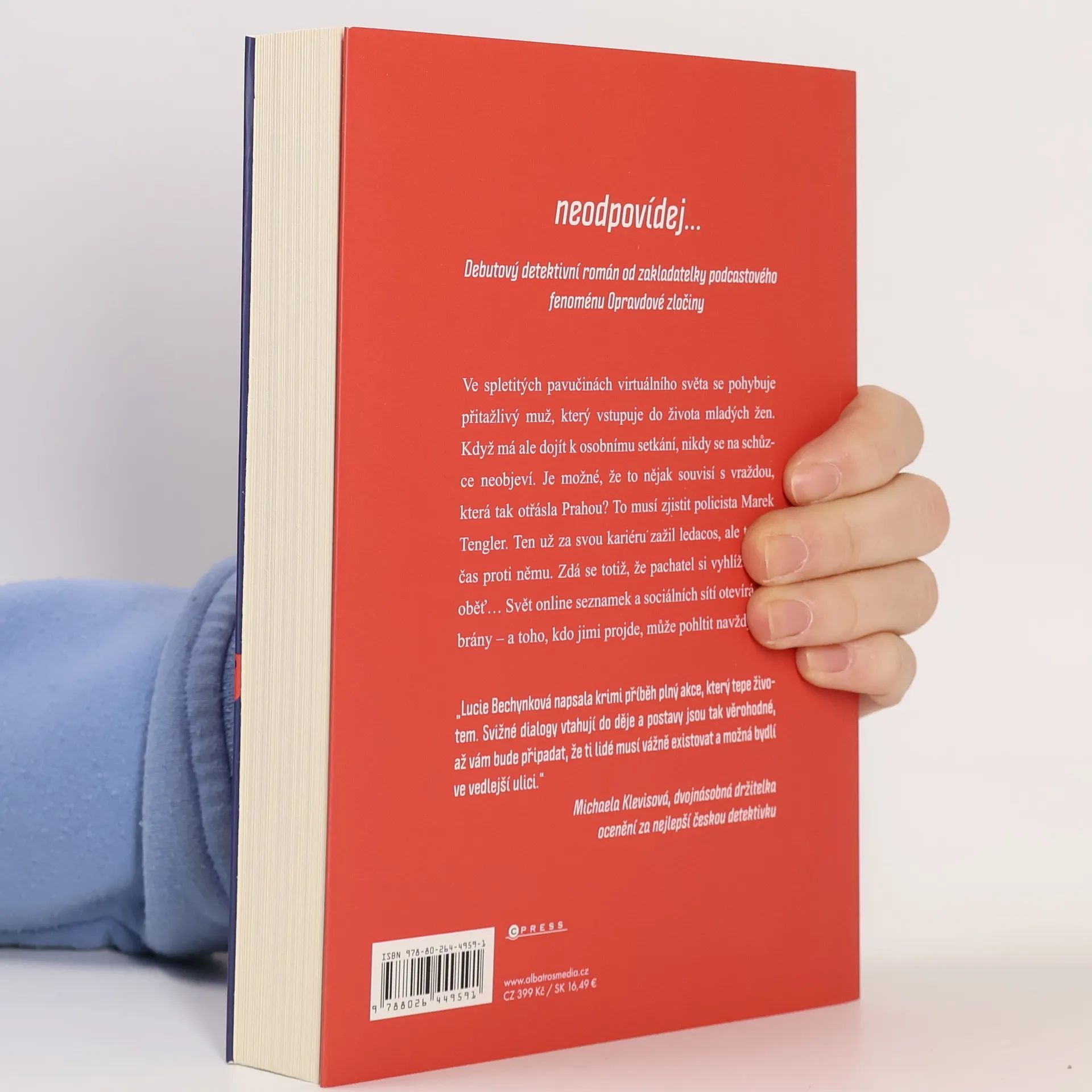 Debutový detektivní román od zakladatelky podcastového fenoménu Opravdové zločiny Ve spletitých pavučinách virtuálního světa se pohybuje přitažlivý muž, který vstupuje do života mladých žen. Když má ale dojít k osobnímu setkání, nikdy se na schůzce neobjeví. Je možné, že to nějak souvisí s vraždou, která tak otřásla Prahou? To musí zjistit policista Marek Tengler. Ten už za svou kariéru zažil ledacos, ale teď je čas proti němu. Zdá se totiž, že pachatel si vyhlíží další oběť Svět online seznamek a sociálních sítí otevírá své brány – a toho, kdo jimi projde, může pohltit navždy.