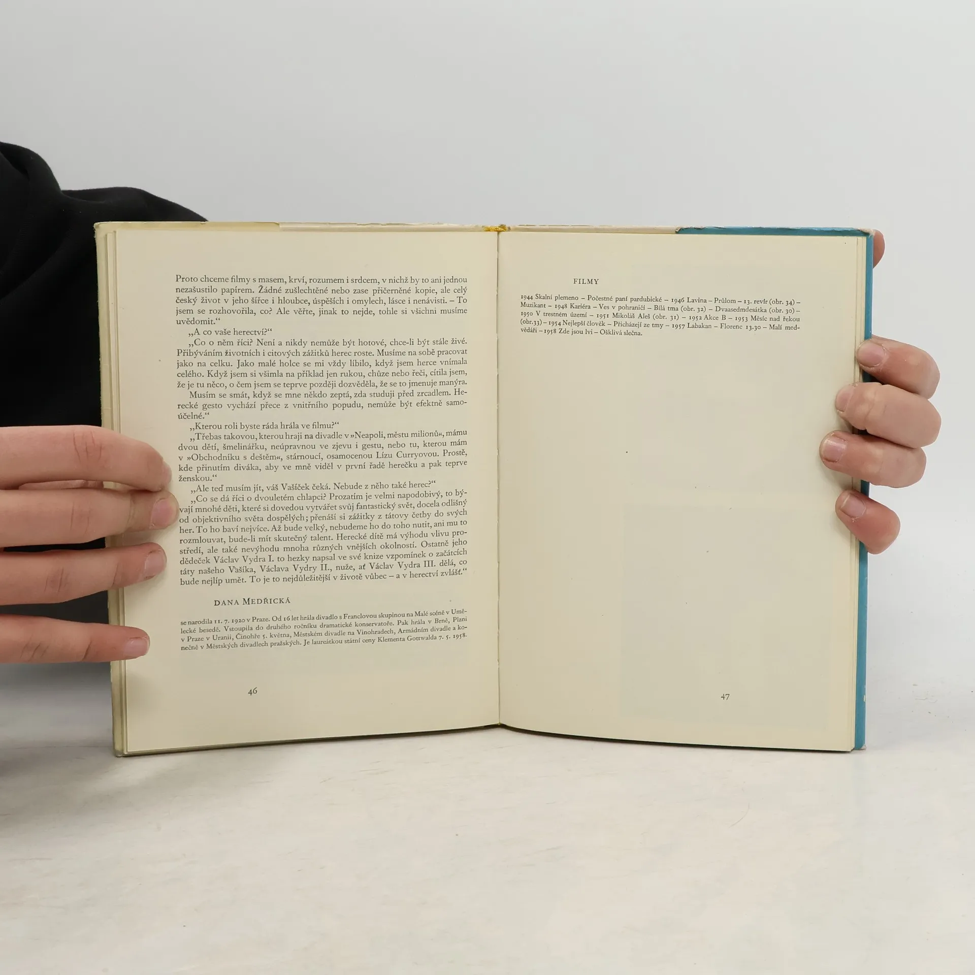 Rozhovory s herci L. Dostálovou, R. Naskovou, Šejbalovou, Vášovou, Glázrovou, FAbiánovou, MAtulovou, Medřickou, Smolíkem, Kohoutem, Pištěkem, Štěpánkem , Průchou, Pivcem a Högrem vedl a zapisoval Jan Wenig v létě 1958. Kniha je doprovázena fotografiemi herců, které pro účely knihy zapůjčila Dokumentace československého filmu Obálku navrhl Josef Ficenec vyšlo v edici Filmové publikace