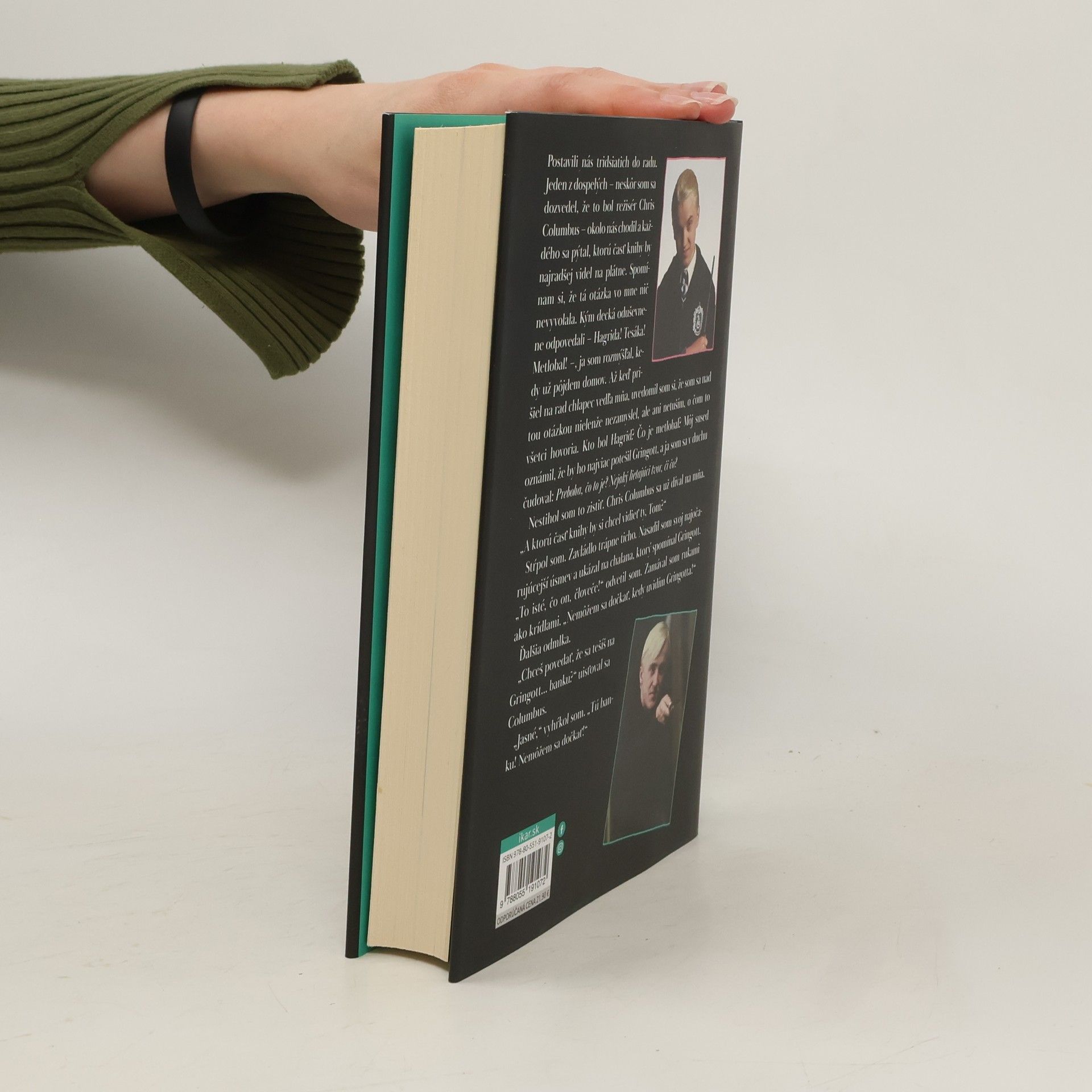 Ohlásili prestávku a Gambon vyčaroval zo svojej brady cigaretu. Nás dvoch bolo často vídať pred skladom, v ktorom stála Astronomická veža, ako si užívame „závan čerstvého vzduchu“, ako sme tomu hovorili. Okolo nás pobehovali maliari, štukatéri, tesári a elektrikári a medzi nimi sme ja a Dumbledore poťahovali z cigariet. Dospievanie Toma Feltona od nakrúcania filmu Piadimužíci po úlohu čarodejníka rozhodne nemožno označiť za obyčajné. Vo svetle reflektorov sa ocitol už ako dvanásťročný, keď získal kultovú rolu Draca Malfoya vo filmoch o Harrym Potterovi. Tom prvý raz úprimne a s humorom jemu vlastným opisuje, aké to bolo vyrastať na plátne a byť súčasťou čarodejníckeho sveta. Hovorí o zlomovom bode vo svojom živote, o filmovom zákulisí a priateľoch, ktorých počas desiatich rokov získal, ako aj o kladoch a záporoch slávy a života po skončení nakrúcania potteroviek. Pripravte sa na stretnutie so skutočným čarodejníkom.
